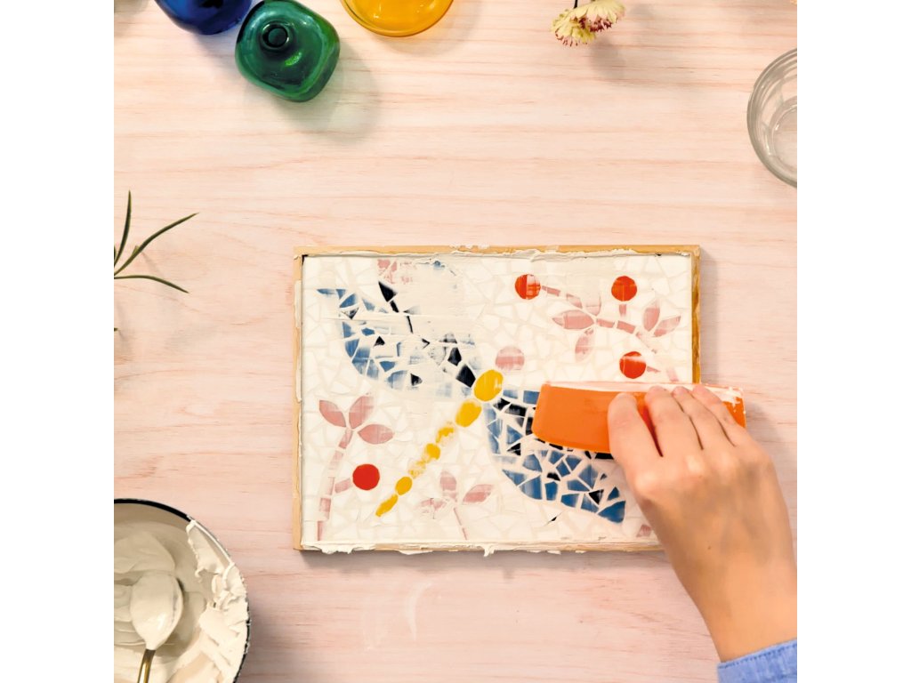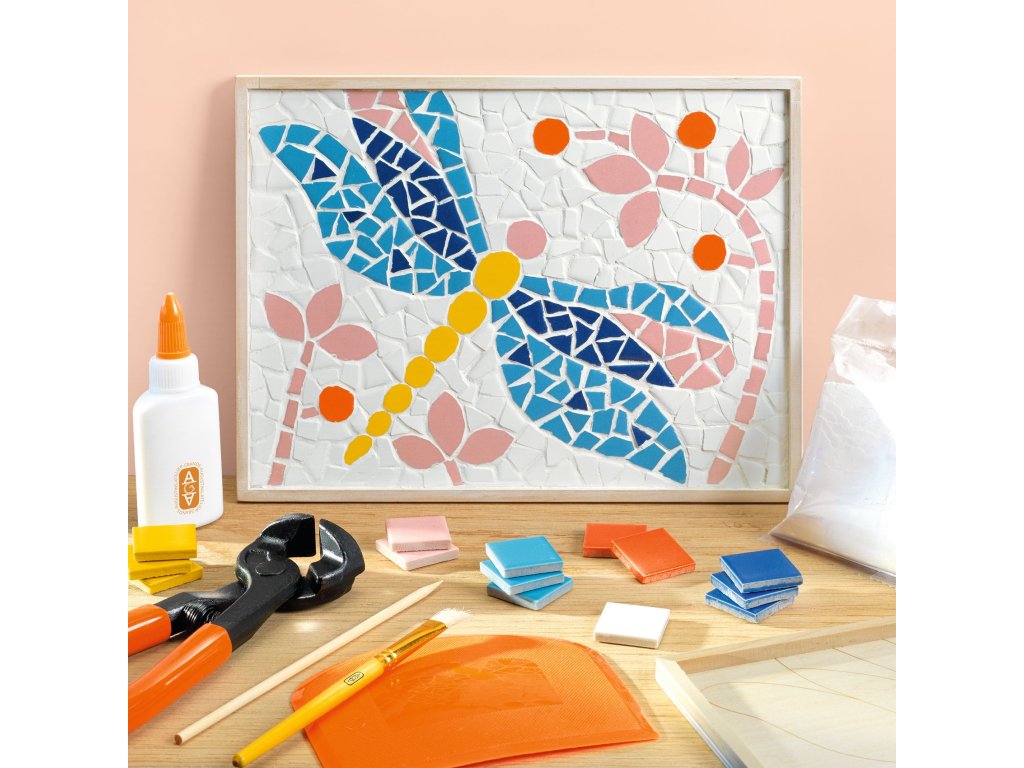 Mozaika z keramiky Ateliér 72 Mozaika ako od profesionála: nalám keramické dlaždice, nalep ich na drevený panel a vyškáruj vlastný obraz vážkyMozaika z keramiky Ateliér 72 je kreatívna sada pre tínedžerov a dospelých, ktorá ťa naučí autentický postup mozaiky – od lámania keramických dielikov až po finálne škárovanie cementom.Pracuješ na potlačenej drevenej doske s motívom vážky, vďaka čomu máš jasné vedenie a môžeš sa sústrediť na farby, rozmiestnenie a detail.V balení sú aj mozaikové kliešte a videonávod, takže zvládneš techniku krok za krokom aj bez predchádzajúcich skúseností.Rýchly prehľad odporúčaný vek: od 15 rokov technika: keramická mozaika + škárovanie (cement) projekt: mozaikový obraz na drevenom paneli (motív vážky) rozvíja: trpezlivosť, presnosť, plánovanie, cit pre farby, sústredenie v balení: drevený panel, 100 keramických dlaždíc, mozaikové kliešte, lepidlo, cement na škárovanie, pružná špachtľa, šablóna, návod + videoPrečo si ju zamiluješ skutočný „ateliérový“ postup – lámanie, lepenie aj škárovanie keramika má krásny povrch a výsledok pôsobí pevne a luxusne potlačený panel pomáha držať tvar a kompozíciu – ideálne aj pre začiatočníkov hotový panel môže slúžiť ako dekorácia (obraz na vystavenie)Ako sa s tým tvorí Príprava: rozlož si keramické dlaždice podľa farieb a priprav panel. (Odporúčame chrániť stôl papierom alebo podložkou.) Lámanie dielikov: pomocou mozaikových klieští nalám dlaždice na menšie kúsky podľa potreby, aby si vyplnil jednotlivé časti motívu. Skúška „nasucho“: pred lepením si kúsky prilož na panel, dolaď rozloženie a medzery medzi dielikmi. Lepenie: nanes lepidlo a dieliky postupne pritláčaj na drevený panel. Nechaj dobre zaschnúť. Škárovanie: priprav cement na škáry (budeš potrebovať malú nádobku a trochu vody – nie je súčasťou balenia) a pomocou pružnej špachtle zatlač cement medzi dieliky. Čistenie: jemne zotri prebytočný cement z povrchu dielikov a nechaj dielo dôkladne vyschnúť.Obsah balenia 1× potlačená drevená doska (panel s motívom) 100× keramická mozaiková dlaždica 1× mozaikové kliešte na delenie dielikov 1× tuba lepidla 1× vrecko s cementom na škárovanie 1× pružná špachtľa na roztieranie cementu 1× šablóna + podrobný ilustrovaný návod letáčik + karta s prístupom k video tutoriáluTechnické parametre rozmery panelu: 23,5 × 18 × 0,8 cm rozmery balenia: 31 × 24,5 × 4,5 cm materiál: drevo, keramika, doplnky na mozaikuDodatočné parametre