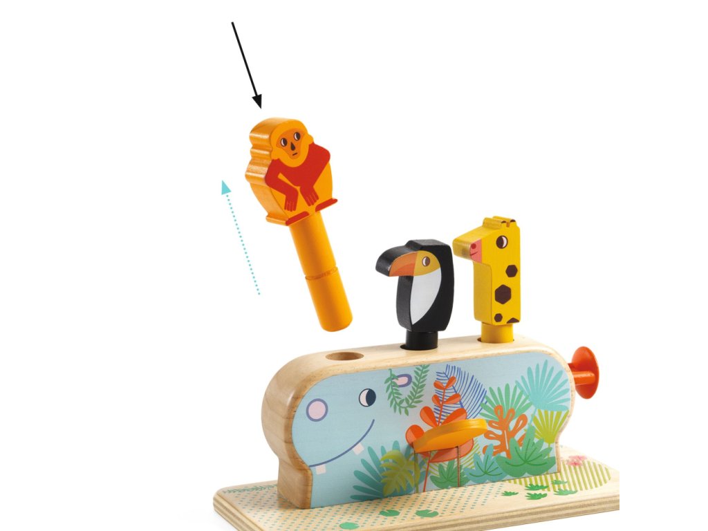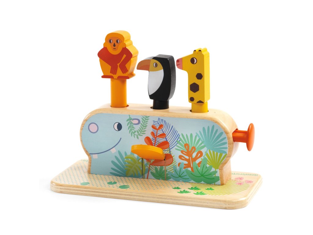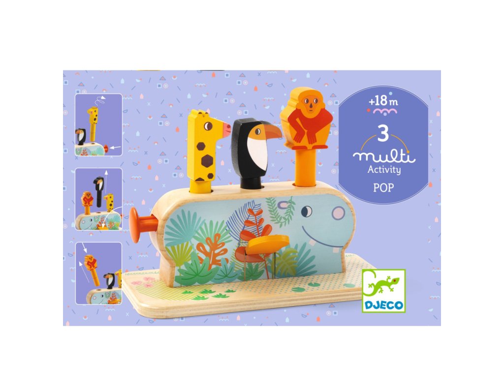 Multi Pop Drevená motorická hračka s 3 vyskakovacími zvieratkamiZábavná drevená hračka pre malé ručičkyPonorte sa do sveta zábavy a objavovania s drevenou motorickou hračkou Multi Pop od Djeco. Táto hravá sada obsahuje 3 roztomilé zvieratká – opicu, tukana a žirafu – ktoré vyskočia z chrbta veselého hrošíka, keď deti stlačia páčky, tlačidlá alebo posunú mechanizmus. Tvorivá hra podporuje jemnú motoriku, koordináciu oko–ruka a prvky logického myslenia, pričom deti zažijú radosť z interaktívnej hry a učenia sa cez zábavu. Hračka je vyrobená z kvalitného dreva s ekologickým certifikátom FSC®, takže je bezpečná pre deti a šetrná k prírode. Multi Pop je ideálny spoločník pre batoľatá, ktoré rady skúmajú, objavujú a hrajú sa.Dodatočné parametre