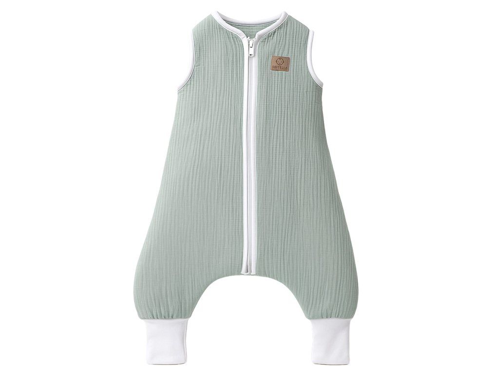 Mušelínový nožičkový spací vak - šalviový (veľ.86)