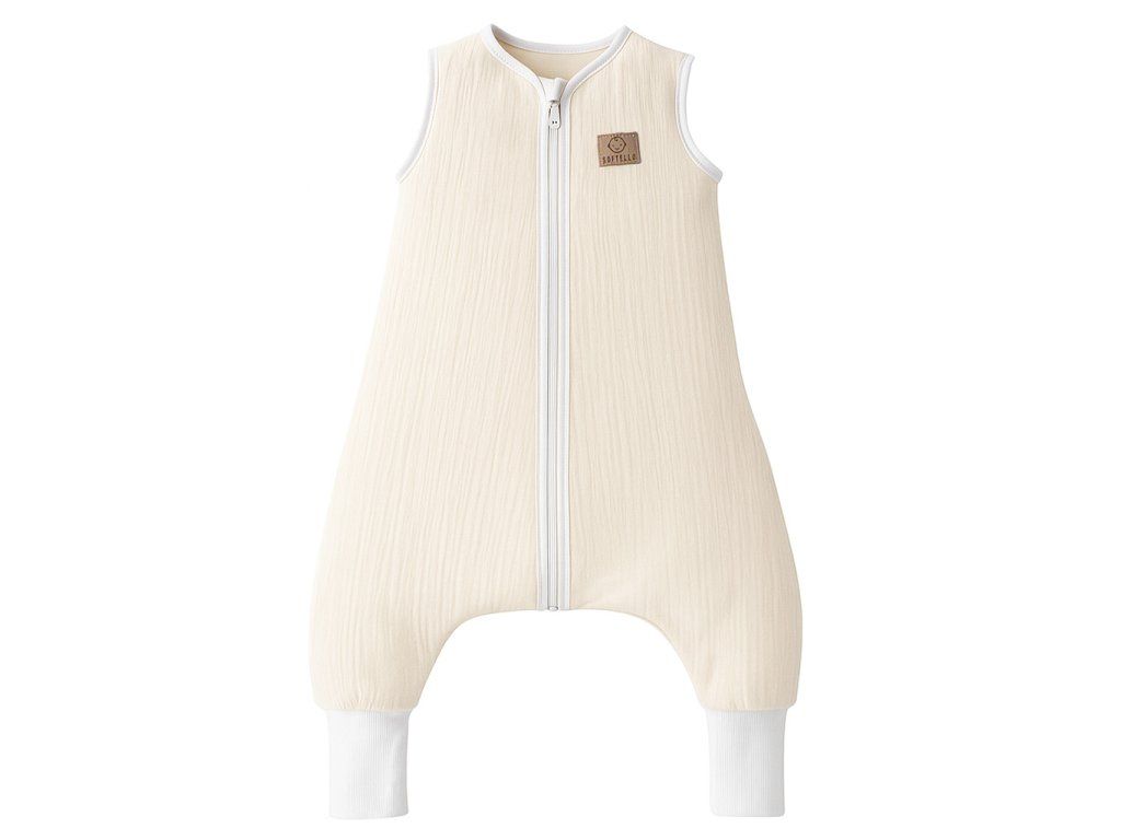Mušelínový nožičkový spací vak SOFTELLO v smotanovej farbe je vhodný pre bábätká vo veku 12-24 mesiacov. Bábätká sú často pri spánku aktívne, otáčajú sa a odkopávajú, ale v nožičkovom spacom vaku budú mať mimoriadne pohodlie, neodkopú sa, bude im príjemne teplučko a budú mať zároveň dostatočnú voľnosť pohybu. Spací vak je ručne šitý z dvoch vrstiev mäkkučkej dvojitej gázoviny (mušelínu), takže vaše dieťatko sa v ňom bude cítiť naozaj pohodlne. Zapína sa obojsmerným zipsom, takže ani prebaľovanie nebude žiadny problém. Na nohách je ukončený dostatočne dlhým patentom (11cm), ktorým po zhrnutí dosiahnete dlhšiu dobu použiteľnosti. Vášmu bábätku poskytne maximálny komfort počas teplých dní, pretože mušelín má veľmi dobrú priedušnosť a umožňuje pokožke voľne dýchať. Skvelo sa dá však použiť počas celého roku, ak spí dieťatko v dostatočne teplej miestnosti aj cez zimu.Spací vak môžete vyprať v práčke pri 30 ° C na jemný program - max 800 otáčok. Nepoužívajte bielidlo, nesušte v sušičke.