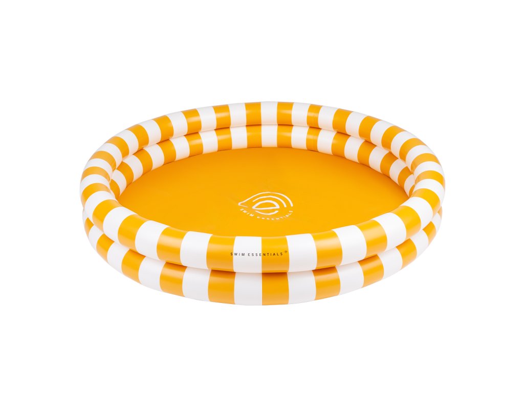 Nafukovací bazén pre deti Prúžky Žltý 100 cm Okrúhly detský bazénik Ø 100 cm: 2 komory, až 60 l vody a svieži dizajn bielo–žlté prúžky Nafukovací bazén pre deti Prúžky Žltý 100 cm od značky Swim Essentials je kompaktný okrúhly bazénik v bielej farbe so žltými pruhmi, ktorý spraví z horúcich dní príjemné vodné chvíle. Priemer 100 cm poskytuje deťom dostatok miesta na čľapkanie a letné osvieženie, pričom výška 15 cm nezaberie veľa priestoru. Bazénik má 2 nafukovacie komory pre stabilnejší tvar a pojme až 60 litrov vody, preto je vhodný približne od 1 roka. Rýchly prehľad priemer: 100 cm rozmery: 100 × 100 × 15 cm objem: až 60 l konštrukcia: 2 nafukovacie komory materiál: odolné PVC bezpečnosť: testované podľa EN-71 Kde sa hodí najviac Bazénik ľahko umiestnite do záhrady, na terasu alebo na priestrannejší balkón. Žlté prúžky pôsobia sviežo a letne, takže bazénik v exteriéri okamžite vynikne a deti k vode prirodzene pritiahne. Odolnosť, balenie a oprava Bazén je vyrobený z odolného PVC pre lepšiu životnosť počas leta. V balení nájdete opravnú sadu na drobné poškodenia a obal je z recyklovaného kartónu.Dodatočné parametre