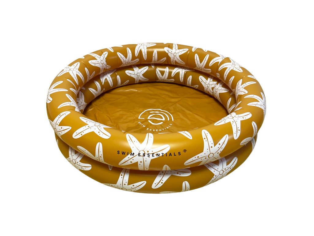 Nafukovací bazén pre deti Sea Star 60 cm Mini detský bazénik Ø 60 cm s motívom morských hviezdic Nafukovací bazén pre deti Sea Star 60 cm od značky Swim Essentials je kompaktný okrúhly bazénik s motívom morských hviezdic, ideálny pre malé deti počas teplých dní. Priemer 60 cm vytvára prehľadný priestor na jemné čľapkanie a „prvé“ vodné hry, pričom objem približne 15 litrov znamená rýchle napustenie aj jednoduché vyprázdnenie. Dve nafukovacie komory pomáhajú udržať stabilný tvar pri sedení aj pohybe. Rýchly prehľad priemer: 60 cm rozmery: 60 × 60 × 15 cm objem: cca 15 l konštrukcia: 2 nafukovacie komory materiál: odolné PVC bezpečnosť: testované podľa EN-71 Kde ho využijete Mini rozmery sú praktické na balkón, terasu aj do záhrady. Bazénik je ľahký a skladný, takže sa hodí aj na dovolenku – keď chcete mať pre dieťa vlastný malý vodný priestor pri vode. Motív Sea Star dodá letnej výbave príjemný „morský“ nádych. Odolnosť, balenie a oprava Bazénik je vyrobený z odolného PVC pre lepšiu životnosť. V balení nájdete opravnú sadu na drobné poškodenia a obal je z recyklovaného kartónu.Dodatočné parametre