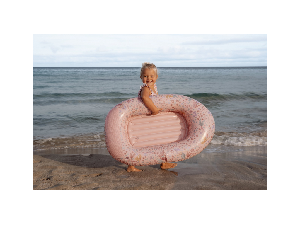 Nafukovací čln do vody s krásnou potlačou motívov morskej víly a kvetov. Čln ľahko nafúknete a keď ho práve nepoužívate, ľahko ho vypustíte a zložíte do kompaktného tvaru.