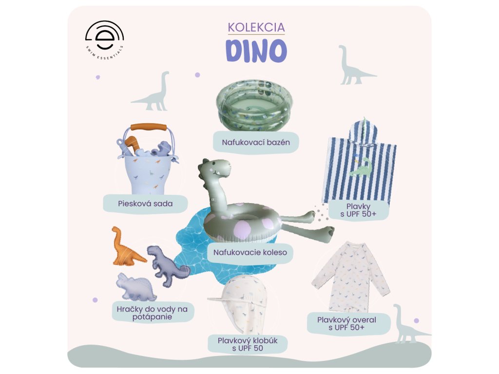 Nafukovacie koleso Dino 95 cm Vyraz na dobrodružstvo s dinosaurom! Priprav sa na poriadne letné dobrodružstvo – tentoraz vo veľkom štýle! S týmto nafukovacím dinosaurom od Swim Essentials sa každé kúpanie zmení na parádne prehistorické šantenie. Či už si malý obdivovateľ dinosaurov, tínedžer, alebo dospelý milovník vodnej zábavy, toto koleso ťa unesie do sveta smiechu, vĺn a nekonečných letných dní.Čo robí z Dino kolesa hviezdu bazéna? Unikátny dizajn dinosaura – zvierací motív, ktorý zaujme každéhoObrovský priemer 95 cm – ideálny pre deti od 6 rokov, tínedžerov aj dospelýchNosnosť až 80 kg – odolné aj pre starších plavcovBez madiel, ale s množstvom štýlu – minimalistický vzhľad, maximálna zábavaEKO balenie z recyklovaného kartónu + sada na opravu v baleníBezpečnosť potvrdená – certifikát EN-71 pre úplný pokojČi už sa chystáš chytať vlny pri mori, alebo chillovať v záhradnom bazéne, tento veľký nafukovací dinosaurus bude tvoj najlepší letný parťák!Dodatočné parametre