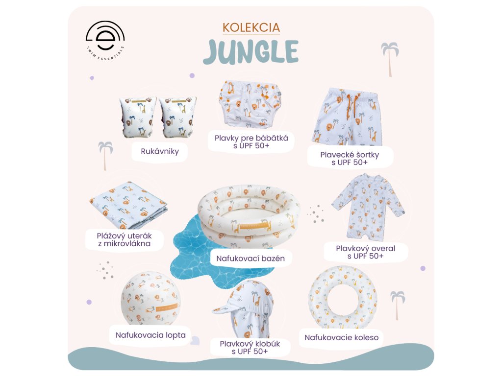 Nafukovacie koleso pre bábätká Jungle Bezpečné zoznámenie s vodou – bábätkovské koleso so sedákom a opierkou Nafukovacie koleso pre bábätká Swim Essentials Jungle s hravým motívom džungle je navrhnuté pre prvé pokojné vodné chvíle s najmenšími. Je vhodné pre deti od 0 do 12 mesiacov (maximálna hmotnosť 11 kg) a vďaka sedáku pomáha udržať bábätko v stabilnej polohe, kým sa prirodzene hýbe ručičkami a nožičkami. Bezpečnosť a pohodlie v detailoch 4 samostatné nafukovacie komory so bezpečnostnými ventilmi Pevný sedák pre stabilnú polohu dieťaťa Malé operadlo pre väčšie pohodlie počas „plávania“ Konštrukcia kolesa je navrhnutá tak, aby poskytovala dobrú stabilitu a pomáhala znižovať riziko prevrátenia. Kde ho využijete najviac na pokojné zoznamovanie s vodou v bazéne na dovolenke pri mori – na jemné vodné radovánky Materiál, balenie a normy Koleso je vyrobené z odolného PVC. Balenie je z recyklovaného kartónu a v balení nájdete aj opravnú sadu. Spĺňa bezpečnostné normy EN-13138-3:2014 a EN-71. Dôležité Používajte výhradne pod neustálym dohľadom dospelej osoby.Dodatočné parametre