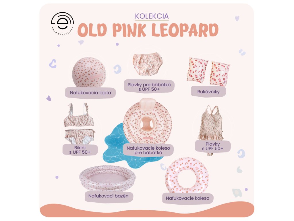 Nafukovacie koleso pre bábätká Old Pink Leopard Koleso so sedákom pre bábätká – stabilita vo vode Nafukovacie koleso pre bábätká Swim Essentials Old Pink Leopard je určené na prvé zoznamovanie s vodou. Je vhodné pre deti od 0 do 12 mesiacov (maximálna hmotnosť 11 kg). Sedák pomáha udržať dieťa v stabilnej polohe a malé operadlo zvyšuje pohodlie počas krátkeho pobytu vo vode. Konštrukcia pre stabilitu 4 samostatné nafukovacie komory s bezpečnostnými ventilmi Pevný sedák pre stabilnú polohu dieťaťa Malé operadlo pre pohodlnejšie „plávanie“ Dieťa môže prirodzene hýbať ručičkami aj nožičkami, pričom koleso poskytuje dobrú stabilitu na hladine. Využitie pokojné zoznamovanie s vodou v bazéne vodné chvíle počas dovolenky pri mori Materiál, balenie a normy Materiál: odolné PVC V balení: opravná sada Balenie: recyklovaný kartón Normy: EN-13138-3:2014 a EN-71 Dôležité Používajte výhradne pod neustálym dohľadom dospelej osoby.Dodatočné parametre