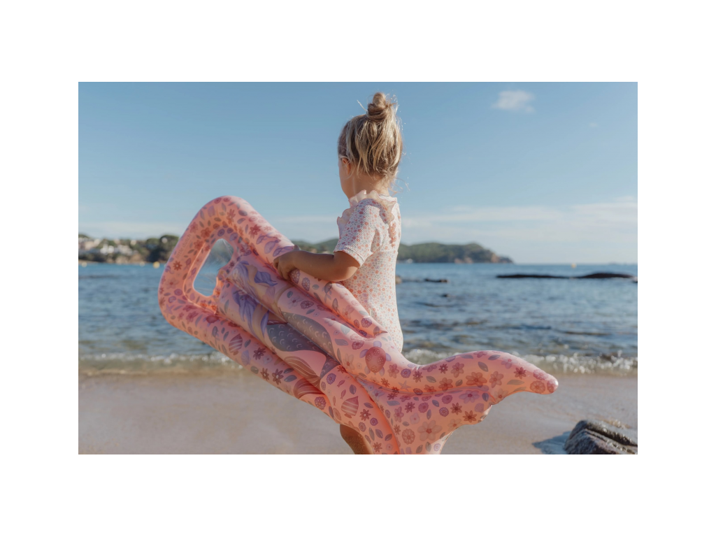 Nafukovacie lehátko do vody s krásnou potlačou motívov morskej víly a kvetov vaše deti využijú na hranie v bazéne aj na pláži pri mori. Priehľadné okienko umožňuje sledovať život pod hladinou pre väčšiu zábavu.