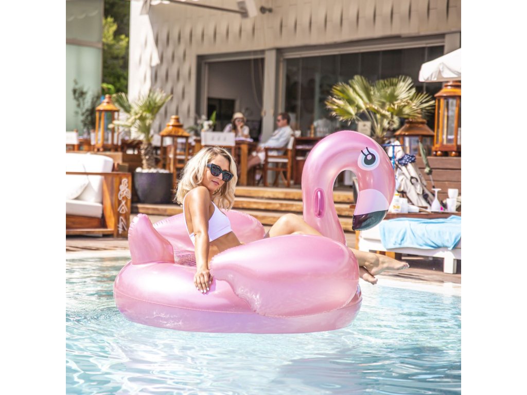 Nafukovačka Plameniak 150 cm Dokonalé nafukovacie lehátko na zábavu aj leňošenie Obrovský nafukovací ružový plameniak od Swim Essentials sa bude krásne vynímať v bazéne aj na mori. Je určený deťom od 6 rokov, maximálna nosnosť je 80 kg, takže ho pokojne využijú aj teenageri či dospelí na zábavu aj leňošenie. Slúži ako multifunkčný doplnok do vody. Dá sa na ňom sedieť, jazdiť aj ležať. Luxusné lehátko s premysleným designom Stabilitu zaistia dve madlá na krku. Vďaka svojmu vzhľadu a farbe bude priťahovať pozornosť všetkých na pláži. Je skvelým doplnkom na záhradnú bazénovú párty či oslavu. Veľkosť lehátka je 142 x 137 x 97 cm Kvalitného nafukovacieho Plameniaka využijete pri mori aj v záhradnom bazéne Prémiová holandská značka Swim Essentials sa pri všetkých svojich výrobkoch zameriava na vysokú kvalitu, funkčnosť a neopozeraný štýl. Aj táto veľká nafukovačka je preto vyrobená z pevného a odolného PVC. Značka taktiež každý rok prináša nové špičkové designy, na ktorých si dáva veľmi záležať. Balenie nafukovačky je vyrobené z recyklovaného kartónu a nájdete v ňom aj jeden set na opravu prípadných dier. Nechýba ani bezpečnostné testovanie hračiek EN 25649.Dodatočné parametre