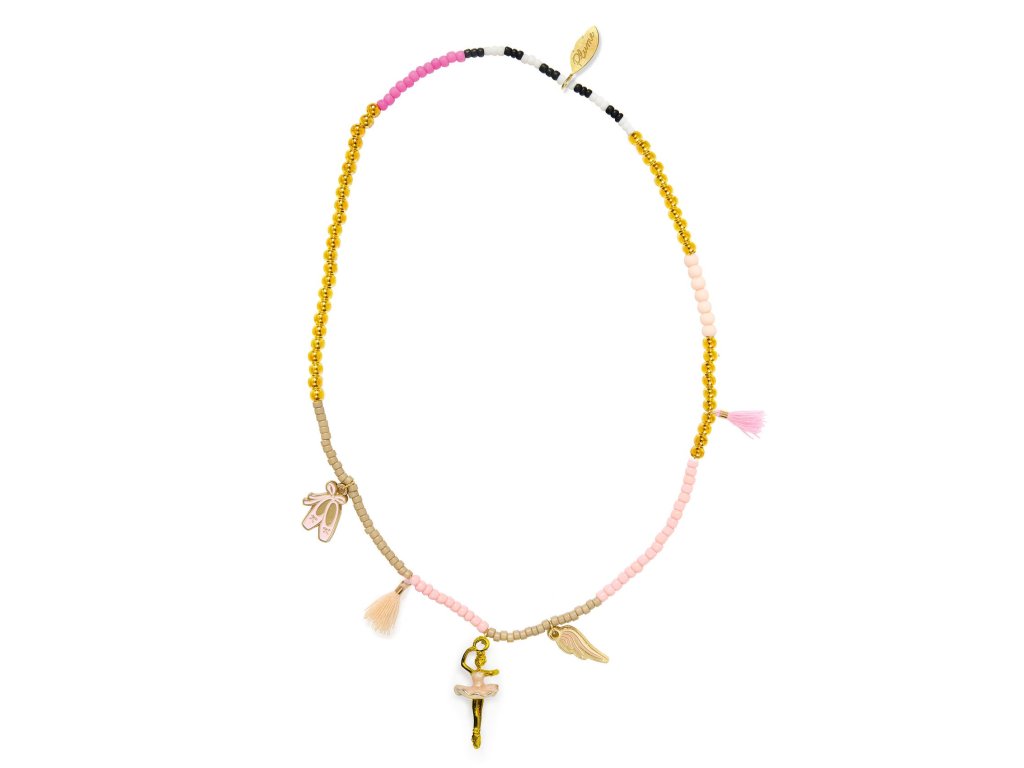 Náhrdelník Isadora Malá baletka v každom outfite: jemné koráliky, prívesky a brmbolce, ktoré sa nasadzujú bez zapínaniaNáhrdelník Isadora je nežný detský šperk inšpirovaný svetom baletu. Farebné akrylové koráliky dopĺňajú 3 smaltované kovové prívesky (baletka, krídlo a baletná topánka) a 2 bavlnené strapce s brmbolcami, ktoré dodajú šperku hravý pohyb. Vďaka dvojitej elastickej niti sa náhrdelník ľahko nasadzuje cez hlavu a drží pohodlne bez potreby zapínania.Rýchly prehľad odporúčaný vek: od 3 rokov rozvíja: estetické cítenie, sebavyjadrenie, jemnú motoriku pri obliekaní v balení: 1× náhrdelník s korálikmi, príveskami a strapcamiPrečo si ho deti zamilujú baletný motív – šperk s príbehom pre malé milovníčky tanca bez zapínania – jednoducho sa nasadí cez hlavu dvojitá elastická niť – odolnejšie a pohodlné nosenie kombinácia korálikov a brmbolcov – jemný, no zároveň hravý efektObsah balenia 1× náhrdelník s akrylovými korálikmi 3× smaltovaný kovový prívesok (baletka, krídlo, baletná topánka) 2× bavlnený strapec s brmbolcamiTechnické parametre materiál: akryl, bavlna, smaltovaná nerezová oceľ priemer náhrdelníka: cca 11 cm rozmery balenia: cca 22 × 5,5 × 1 cmDodatočné parametre