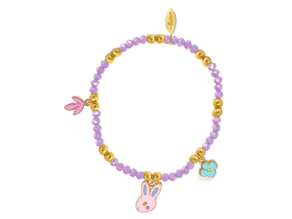 Náramok Rose Korálkový náramok, ktorý sa navlieka sám: bez zapínania a bez trápeniaNáramok Rose je farebný náramok z akrylových korálok, doplnený o tri smaltované prívesky (zajačik, list, kvietok) a zlatý detail. Dvojitá elastická niť zvyšuje odolnosť a uľahčí nasadenie.Rýchly prehľad odporúčaný vek: od 3 rokov rozmer: priemer náramku cca 6 cm zapínanie: bez zapínania (elastická niť)Obsah balenia 1× náramokDodatočné parametre