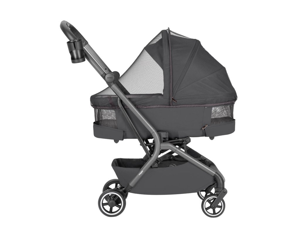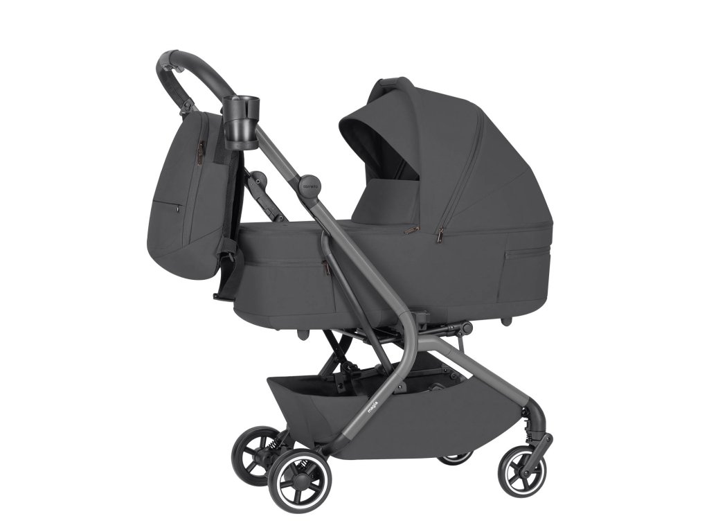 Jeho rozmery a hmotnosť zodpovedajú štandardom pre príručnú batožinu. Ľahko sa s ním pohybujete metrom, autobusom, taxíkom alebo dokonca lietate po celom svete – s týmto kočíkom je všetko oveľa pohodlnejšie. Hĺbková vanička je plnohodnotná, skladacia a vyrobená z kombinovaných materiálov. Veľká strieška a izolovaný kryt nôh vytvárajú príjemnú mikroklímu v chladnom počasí.