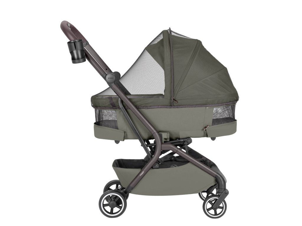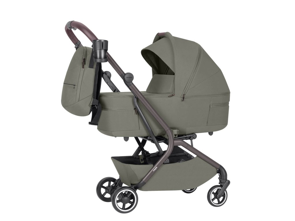 Jeho rozmery a hmotnosť zodpovedajú štandardom pre príručnú batožinu. Ľahko sa s ním pohybujete metrom, autobusom, taxíkom alebo dokonca lietate po celom svete – s týmto kočíkom je všetko oveľa pohodlnejšie. Hĺbková vanička je plnohodnotná, skladacia a vyrobená z kombinovaných materiálov. Veľká strieška a izolovaný kryt nôh vytvárajú príjemnú mikroklímu v chladnom počasí.