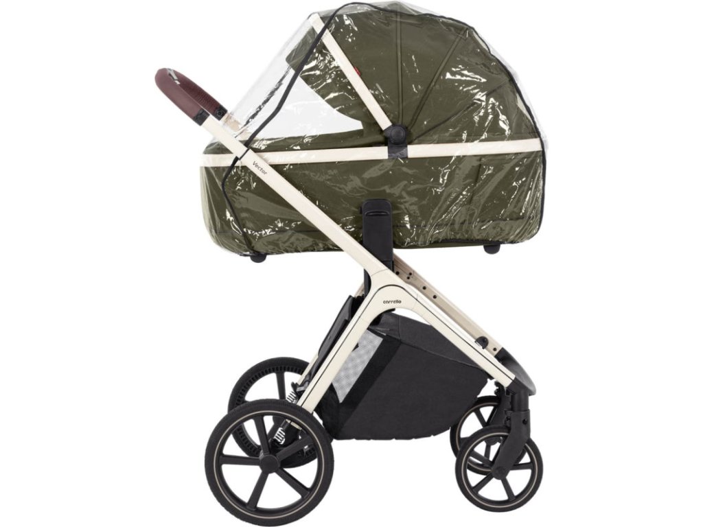 - Telo kolísky je vyrobené z hustého, viacvrstvového textilného materiálu s hydrofóbnymi vlastnosťami a ochranou proti UV žiareniu (SPF 50).