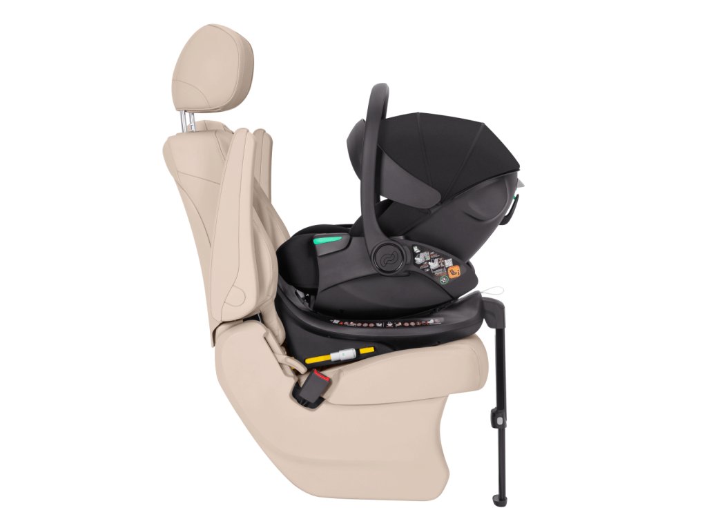 **Štýlová súprava autosedačky pre deti s nastaviteľným sklonom (skupina 0+, 40-87 cm) s otočnou 360 základňou ISOFIX R129** Táto autosedačka spĺňa najnovší štandard **I-Size** pre vyššiu bezpečnosť. **Návlek na nohy a strieška** poskytujú dodatočné pohodlie pre vaše dieťa. **Nastaviteľná rukoväť** uľahčuje každodenné používanie a slúži ako dodatočná ochrana pri montáži do auta. Pre **optimálne pohodlie a správne používanie** v závislosti od výšky dieťaťa má sedačka **nastaviteľnú opierku hlavy a ramenné popruhy**. Všetky potrebné montážne pokyny a označenia sú prehľadne zobrazené na tele autosedačky. Ak výška dieťaťa presahuje **75 cm**, **trojuholníkový anatomický vankúš a vložka** by sa už nemal používať. Autosedačka sa inštaluje pomocou **ISOFIX základne a stabilizačnej podpornej nohy** pre maximálnu bezpečnosť. **otočná základňa** umožňuje ľahké otočenie autosedačky smerom k dverám auta pre jednoduchú inštaláciu. Otočné tlačidlá sú pohodlne **zdvojené na oboch stranách** pre užívateľsky príjemnú obsluhu.