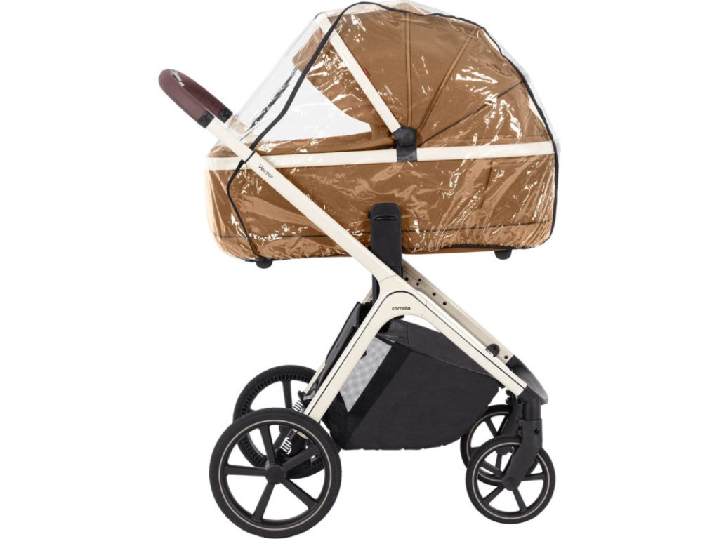 - Veľká, nízka strieška a kryt nôh s okienkom poskytujú pohodlie a ochranu v chladnom počasí.