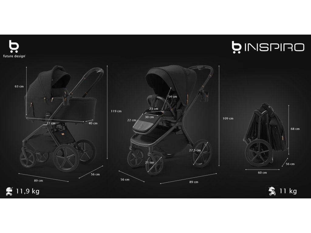 Novinka Future Design Inspiro - kočík 2v1 so skladacou hlbokou vaničkou Pure Black