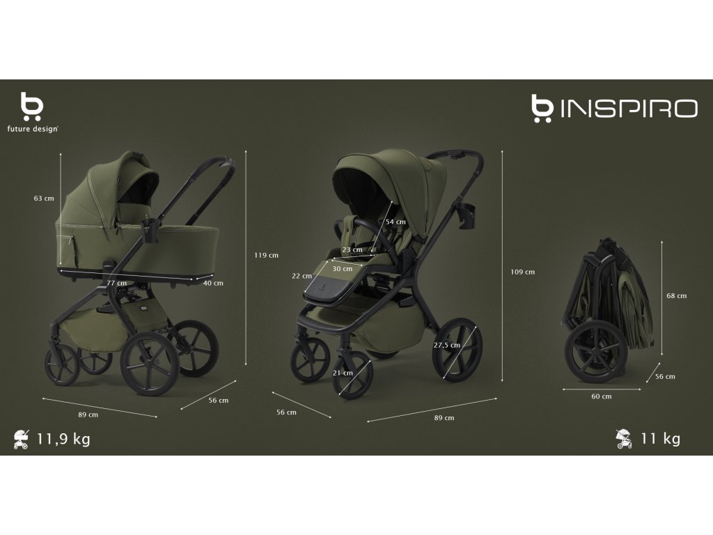 Novinka Future Design Inspiro - kočík 2v1 so skladacou hlbokou vaničkou Silk Olive