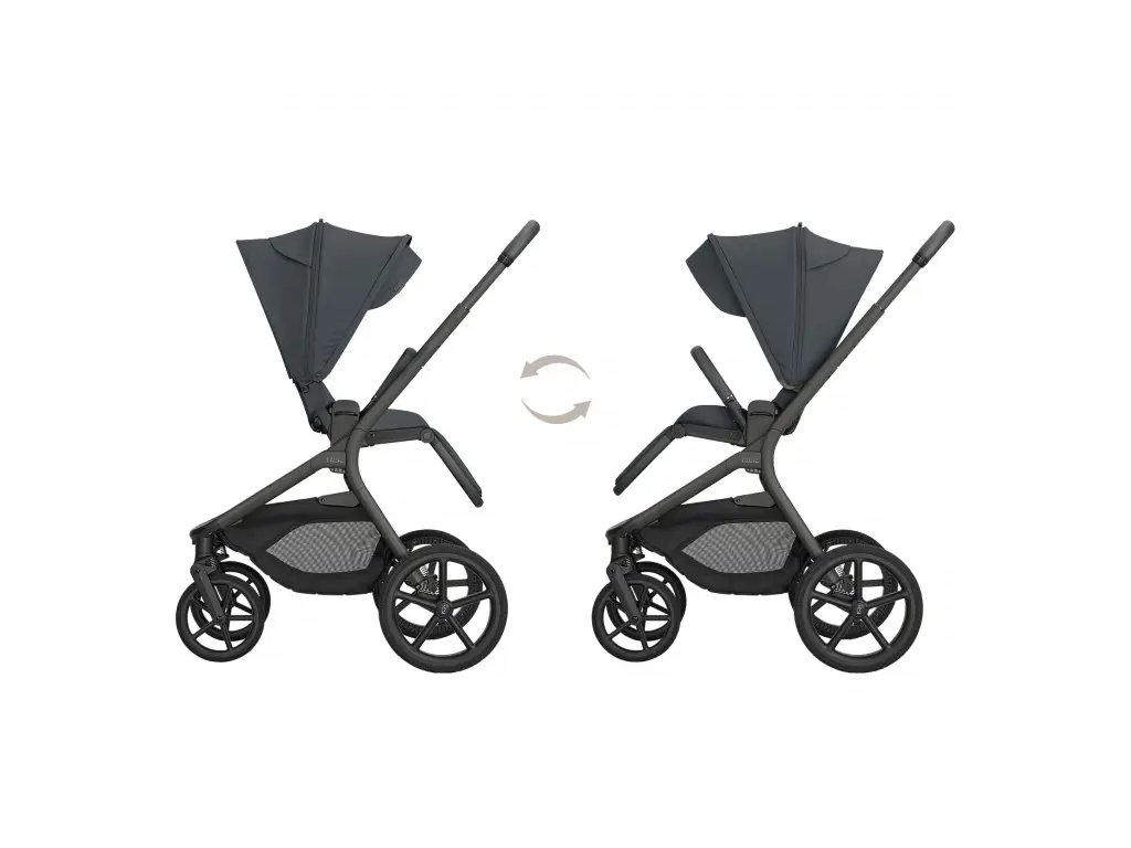 Športové sedenie je možné nasadiť po aj proti smeru jazdy a vďaka tlačidlám s pamäťou ho uvoľníte z podvozku pohodlne jednou rukou. Výšku sedenia môžete nastaviť do dvoch polôh pre prispôsobenie kočíka podľa výšky rodiča. Odnímateľné madlo pred dieťaťom je otočné o 360 ° pre ľahkú manipuláciu s dieťaťom a potiahnuté príjemnou ekokožou.