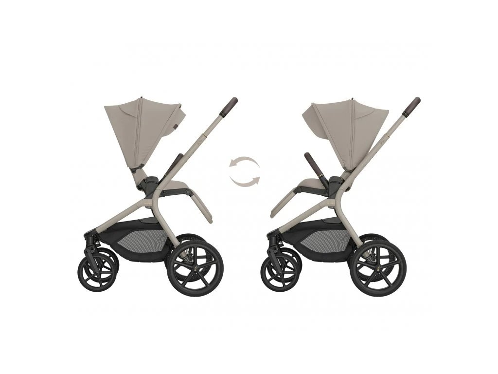 Športové sedenie je možné nasadiť po aj proti smeru jazdy a vďaka tlačidlám s pamäťou ho uvoľníte z podvozku pohodlne jednou rukou. Výšku sedenia môžete nastaviť do dvoch polôh pre prispôsobenie kočíka podľa výšky rodiča. Odnímateľné madlo pred dieťaťom je otočné o 360 ° pre ľahkú manipuláciu s dieťaťom a potiahnuté príjemnou ekokožou.