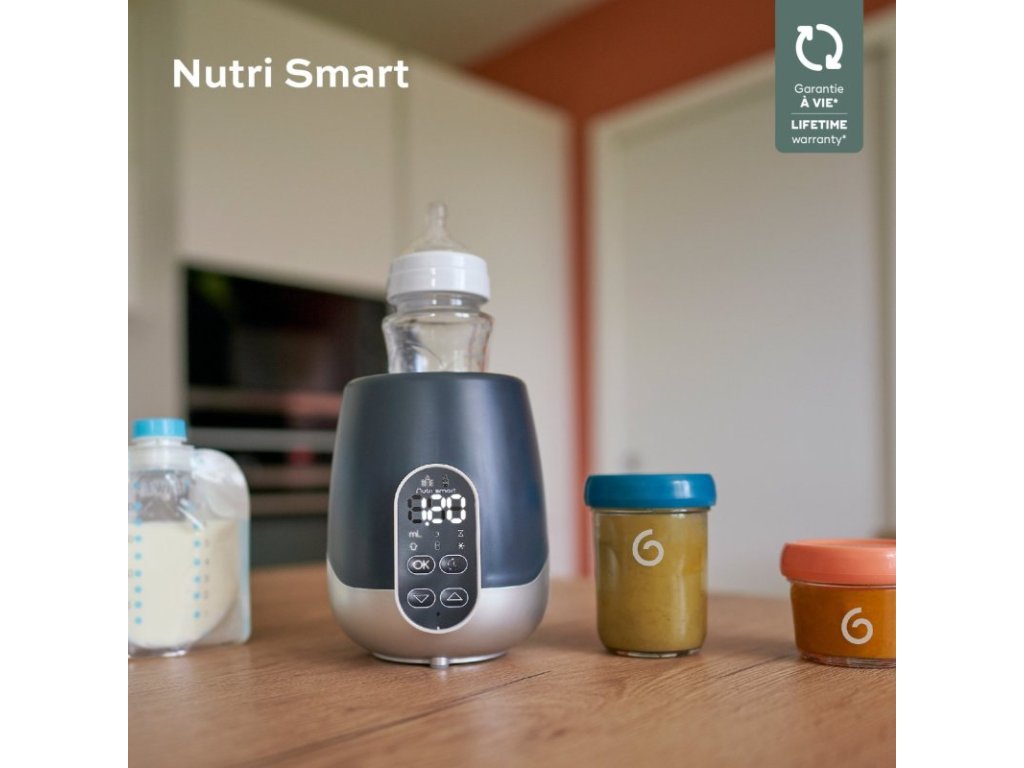- intuitívny ohrievač - zadaním množstva mlieka alebo príkrmu na ohriatie a jeho východiskovej teploty (izbová teplota, chladené alebo mrazené) Nutri Smart automaticky ponúkne správnu dobu ohrevu