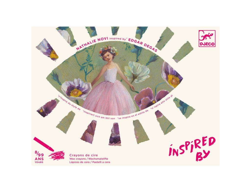 Kreatívna sada Olejové pastelky podľa Edgara Degasa Edgar Degas v podaní súčasnej umelkyne. Nathalie Novi sa inšpirovala majstrom impresionizmu a vytvorila štyri obrázky baletiek. Obrázky majú snovú atmosféru, pre ktorú je dôležitá hra svetla a tieňa. Pri vyfarbovaní voskovkami, ktoré sú ako olejové pastelky, sa naučíš správne kombinovať odtiene, svetlé a tmavé farby. Tvorbou ťa prevedie obrázkový návod.Kreatívna sada z kolekcie Inspired by. Oboznamuje s tvorbou dávnych majstrov prostredníctvom súčasných umelcov.Obsah: 8 obrázkov na vyfarbenie olejovými pastelkami (4 motívy x 2 ks), 12 olejových pasteliek, obrázkový návodRozmery obrázkov: 20 x 20 cmDodatočné parametre