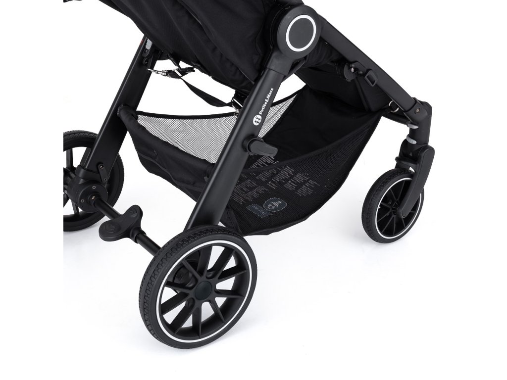 Set obsahuje kompletný športový kočík Street+ RWS Black s celogumenými kolieskami, vrátane striešky ku kočíku. Športový kočík Street+ RWS Black je vďaka menším kolieskam ľahší, celogumené kolieska majú ale napriek tomu výborné jazdné vlastnosti. Madlo a rukoväť sú v krásnej čiernej farbe. Vy aj dieťatko si ho určite obľúbite už od prvej jazdy a za každého počasia. Kvalitná konštrukcia s jemným odpružením tlmí nárazy, materiály zabezpečujú, aby bol kočík ľahký. Celogumové RWS kolesá zvládnu jazdu aj v náročnejšom teréne, no zároveň sa nemusíte obávať defektu. Kočík je určený pre deti od 6 mesiacov do 22 kg. Maximálna hmotnosť zaťaženia kočíka je do 25 kg. Vlastnosti: - RWS celogumové kolesá - otočné predné kolieska s aretáciou - jednoduché skladanie jednou rukou - výškovo polohovateľná rukoväť a odnímateľné madlo potiahnuté čiernou eko-kožou - veľká opierka chrbta pre maximálne pohodlie dieťaťa - sieťka v zadnej časti opierky chrbta pre lepšie prevzdušnenie kočíka - vrecko na drobnosti v zadnej časti - päťbodové nastaviteľné bezpečnostné pásy - jednoduchý systém polohovania opierky chrbta a nôh takmer do úplného ľahu - extra veľká strieška s okienkom a SPF 50 - kvalitný úchyt kolies, ktorý zabezpečuje stabilitu kočíka počas jazdy - veľký priestranný nákupný košík s nosnosťou do 3 kg - stredová priečka pod rukoväťou, ktorá zabezpečuje lepšiu stabilitu kočíka - centrálna brzda - ľahká hliníková konštrukcia - poistka proti rozloženiu kočíka - poťah nie je možné zvliecť Bonusom je farebná variabilita v podobe dokúpenia ďalšej striešky vo farbách Basic Line alebo limitovanej edície striešok Limited 100. Jeden kočík na mnoho spôsobov Upozornenie: Striešky a polstrovania Street+ nie sú kompatibilné s konštrukciami Street Klasik a Street Air Klasik. Striešky a polstrovania Street Klasik nie sú kompatibilné s konštrukciami Street+ RWS a Street+ Air. Špecifikácia: - značka: Petite&Mars - maximálne zaťaženie kočíka: 25 kg - maximálna hmotnosť dieťaťa v kočíku: 22 kg - hmotnosť konštrukcie: 11,39 kg (s kolesami) - hmotnosť kočíka: 11,98 kg (konštrukcia + kolesá + strieška s polstrovaním) - rozmery rozloženého kočíka: v- 108 cm, š- 56 cm, d- 87 cm (s kolieskami) - rozmery zloženého kočíka: v- 28 cm, š- 56 cm, d- 75 cm (s kolieskami) - šírka sedadla: 35 cm - dĺžka chrbtovej opierky: 48 cm - dĺžka celej spacej časti: 91 cm - priemer predného kolesa: 17,5 cm - priemer zadného kolesa: 23,5 cm - EN 1888-2:2018 Možnosť dokúpiť ku kočíku: - nánožník - vložku do kočíka - prebaľovaciu tašku alebo organizér - pláštenku - dekuDodatočné parametre