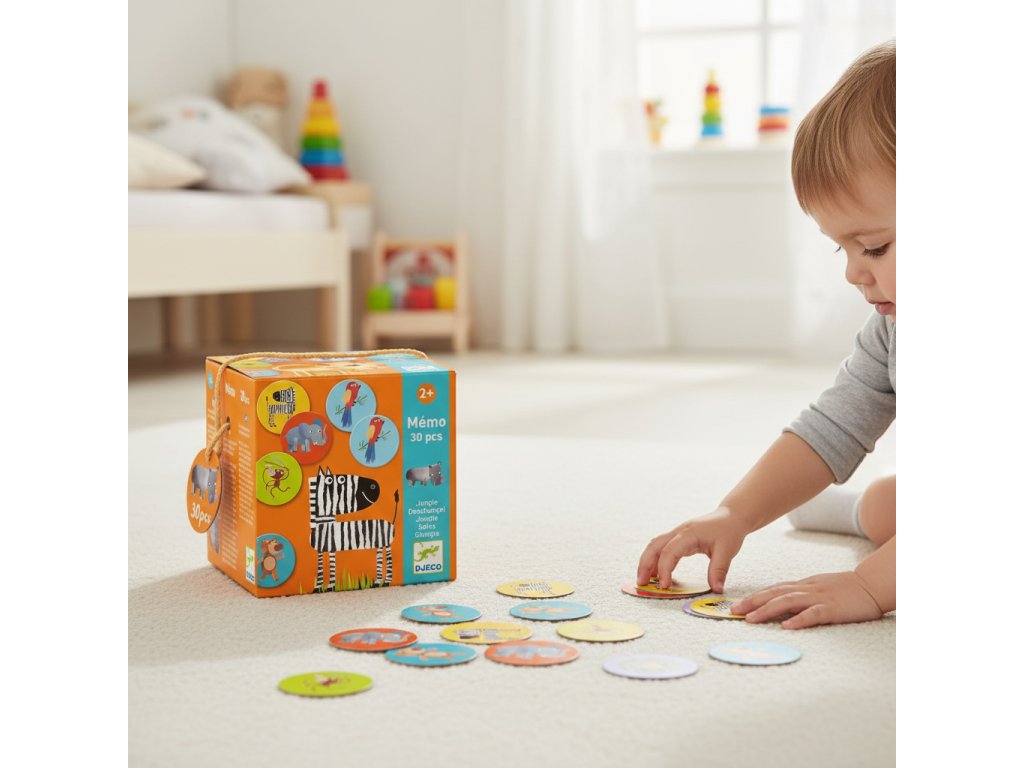 Pexeso Džungľa Pexeso pre malých hráčov: 15 párov z džunglePexeso Džungľa je klasické pexeso s krásnymi ilustráciami. Otočte dve kartičky, hľadajte páry a rozprávajte sa o zvieratkách – hra prirodzene rozvíja pamäť aj slovnú zásobu.Rýchly prehľad odporúčaný vek: od 3 rokov téma: pexeso s džungľovými zvieratkami – hľadanie 15 párov rozvíja: pamäť, postreh, sústredenie a slovnú zásobuPrečo si ho deti zamilujú 15 párov – ideálne pre predškolákov pevné okrúhle kartičky sa dobre držia praktická krabička s uškom – skvelé na cesty podporuje pamäť, sústredenie a pozorovanieAko sa hrá Rozložte kartičky lícom nadol a premiešajte ich. Hráč otočí dve kartičky – ak sú rovnaké, pár si nechá. Vyhráva ten, kto nazbiera najviac párov.Obsah balenia 30× kartička (15 párov) pevné okrúhle dieliky vhodné do detských rúkTechnické parametre materiál: pevný kartón priemer kartičky: cca 6,5 cm balenie: krabička cca 12 × 12 × 12 cm (s uškom)Dodatočné parametre