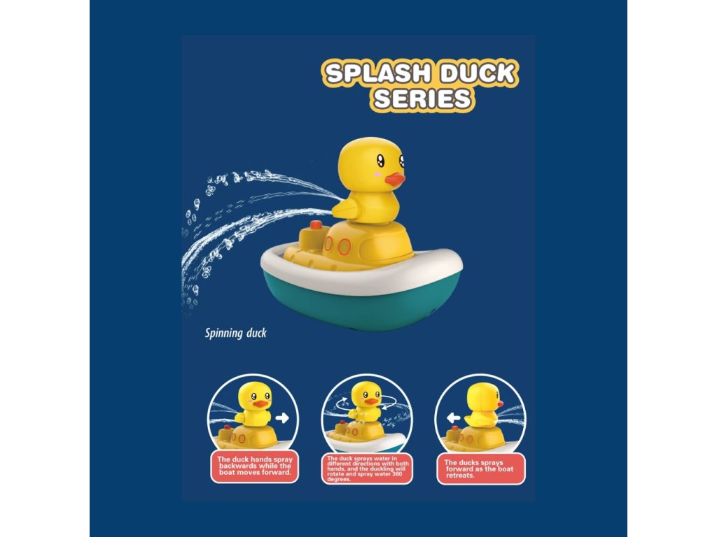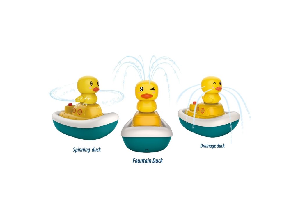 Plávajúca loďka s kačičkamiHra, ktorú si deti zamilujúPlávajúca loďka s kačičkami prinesie deťom do kúpeľne poriadnu dávku vodnej zábavy. Súčasťou balenia je jedna loďka a tri kačičky, ktoré sa pri zapnutí alebo po kontakte s vodou môžu otáčať a striekať vodu, čím vytvárajú efekty fontánky alebo vodného kruhu okolo seba. Deti môžu loďku naháňať po hladine, pozorovať prúdy vody a vymýšľať si vlastné vodné príbehy.Sada podporuje spoluprácu aj predstavivosť, keď si deti vymýšľajú hry s viacerými kačičkami. Hračka je vhodná pre deti od 3 rokov, funguje na batérie, ktoré nie sú súčasťou balenia. Loďka aj kačičky sú vyrobené z kvalitného plastu s hladkými hranami a sú vhodné do vane aj menšieho bazéna, takže deti ich môžu používať doma aj vonku.Nevhodné pre deti do 3 rokov. Používať len pod priamym dohľadom dospelej osoby.Dodatočné parametre