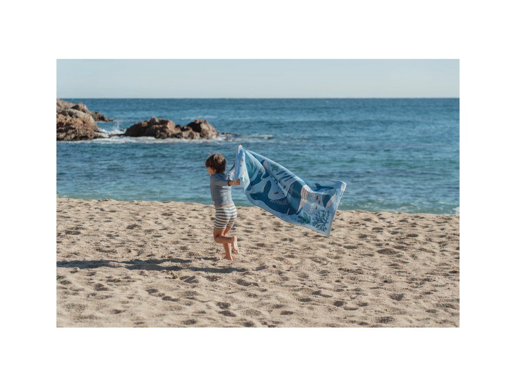 Mäkká froté osuška z jemnej organickej bavlny s krásnou potlačou je ideálna pre ľahké a rýchle osušenie a zabalenie dieťaťa po kúpaní v bazéne, v mori aj doma po kúpeli.
