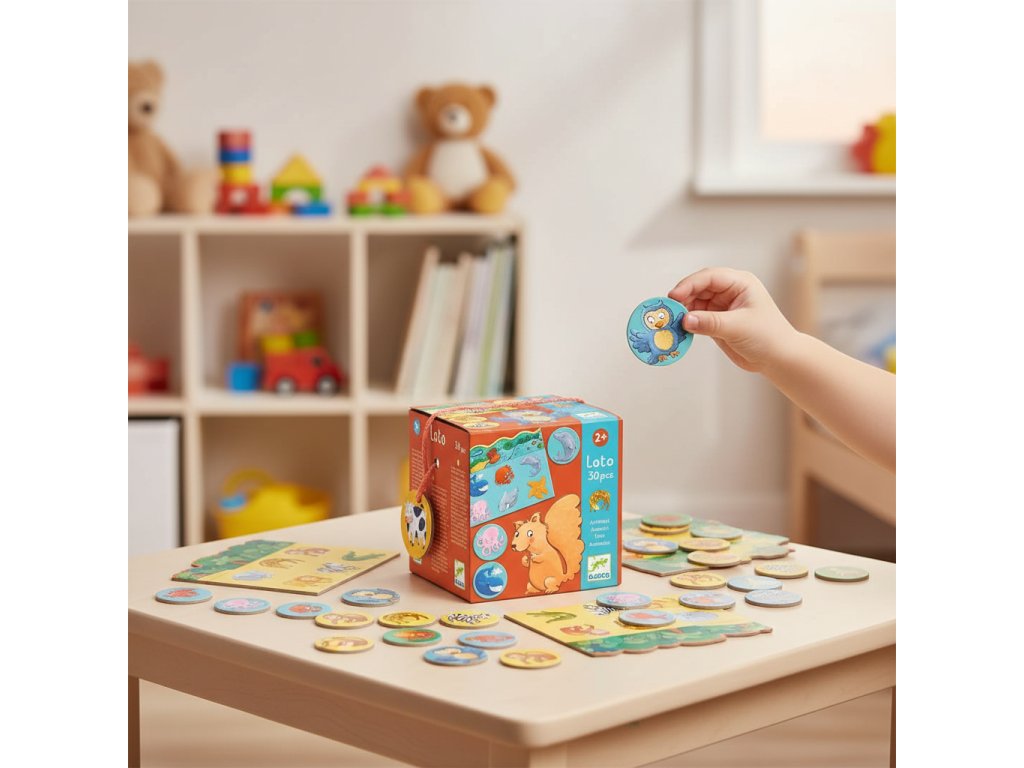 Hra Loto Zvieratká Priraďovanie obrázkov: loto so zvieratkami pre najmenšíchPriraďovacia hra Zvieratká je jednoduchá priraďovacia hra typu loto. Deti ťahajú kartičky a hľadajú zhodný obrázok na svojej doske – ideálne na prvé spoločenské hry.Rýchly prehľad odporúčaný vek: od 2 rokov téma: obrázkové loto – priraďovanie kartičiek na herné dosky rozvíja: slovnú zásobu, pozorovanie, pamäť a triedeniePrečo si ho deti zamilujú jednoduché pravidlá zrozumiteľné už od 2 rokov 5 dosiek a 30 kartičiek – veľa zvieratiek na spoznávanie podporuje slovnú zásobu a schopnosť priraďovať pevné kartónové dieliky vhodné do detských rúkAko sa hrá Každý hráč si vyberie hernú dosku so zvieratkami. Zamiešajte kartičky a ťahajte ich po jednej. Kto má zhodný obrázok, položí kartičku na dosku – vyhráva prvý s plnou doskou.Obsah balenia 5× herná doska 30× kartička so zvieratkamiTechnické parametre materiál: kartón/papier (z udržateľne spravovaných lesov) rozmer balenia: cca 15 × 15 × 15 cmDodatočné parametre