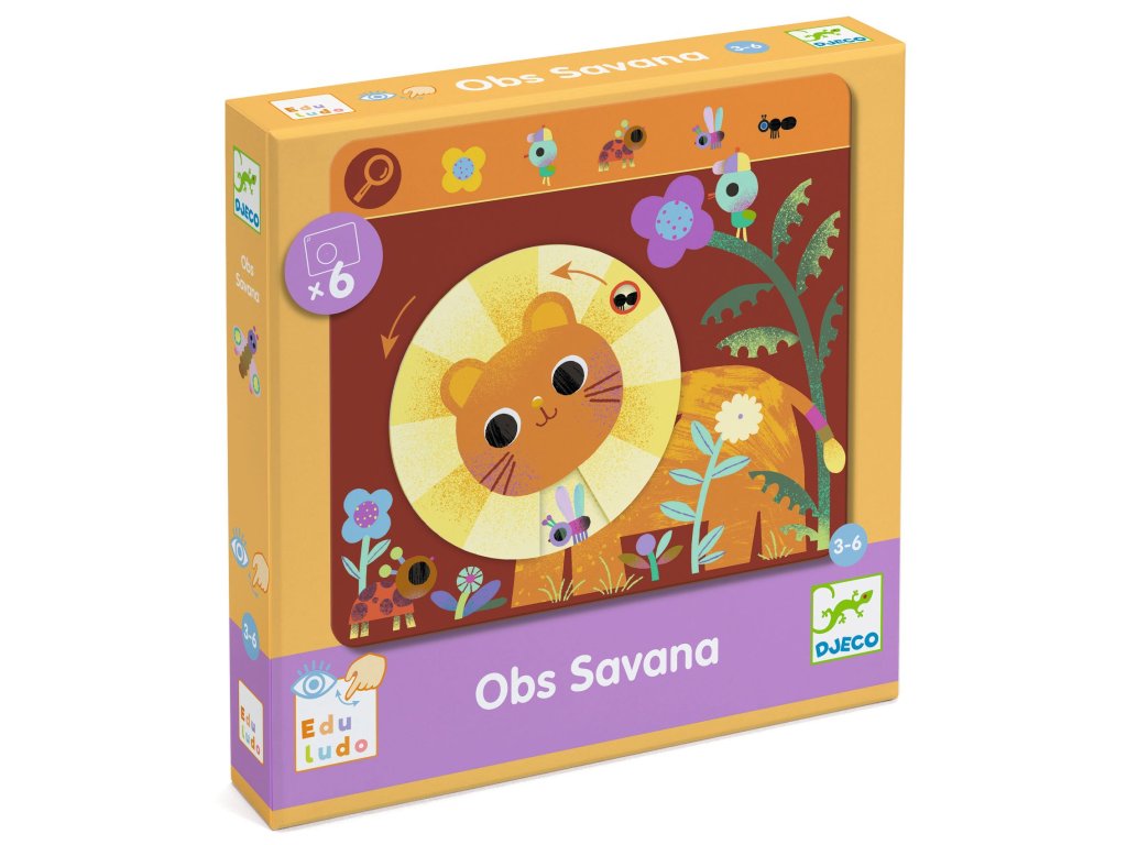 Prvá hľadacia hra Obs Savana Savana plná prekvapení: otáčaj kolieskom a nájdi zvieratká ukryté v obrázkuPrvá hľadacia hra Obs Savana je interaktívna „hľadaj a nájdi“ aktivita pre predškolákov, kde sa deti učia pozorne pozerať a všímať si detaily.Na každej z 6 pevných hracích dosiek je pohyblivé otočné koliesko, ktoré mení scénu – dieťa otáča, pozoruje a postupne objavuje, čo sa na savane skrýva.Rýchly prehľad odporúčaný vek: 3 – 6 rokov počet hráčov: 1 (ideálne aj na samostatné hranie) v balení: 6 hracích dosiek s otočným prvkom + návod rozvíja: postreh, sústredenie, jemnú motoriku, slovnú zásobuPrečo si ju deti zamilujú obrázky sa menia – otáčanie kolieska prináša stále nové objavy kombinuje hľadanie detailov a manipuláciu prstami tréning pozornosti bez nudy – krátke úlohy, rýchla odmena pevné dosky sú odolné a vhodné na časté hranieAko sa s tým hrá Vyber jednu dosku a pozri sa, čo máš nájsť. Otáčaj kolieskom a sleduj, ako sa scéna mení. Keď nájdeš správny detail, pomenuj ho a pokračuj ďalším hľadaním.Obsah balenia 6× hracia doska s otočným pohyblivým prvkom návodTechnické parametre materiál: papier a kartón (FSC) rozmery dosky: cca 16 × 18 × 0,5 cm rozmery balenia: cca 21,5 × 21,5 × 4 cm Tu nájdete návodDodatočné parametre