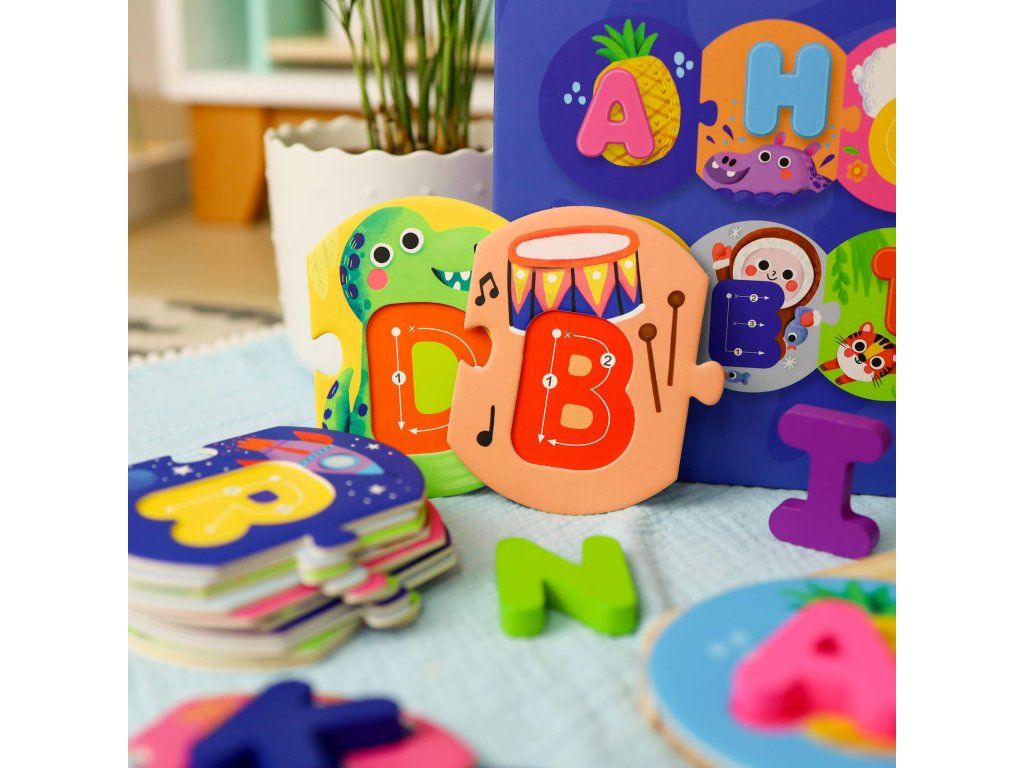Puzzle Abeceda SK/CZ Skladaj puzzle a uč sa písmenká! Spojovacie a vkladacie puzzle Abeceda z pevného kartónu od EDUkid umožňuje deťom skladať puzzle a učiť sa pri tom písmená. Balenie obsahuje 26 spojovacích puzzle dielikov z pevného kartónu s obrázkami písmen a zvieratiek či vecí, ktoré na danú hlásku začínajú, a 26 písmen, ktoré sa následne vkladajú na správne miesto na obrázku. Deti si prostredníctvom skladania asociujú jednotlivé písmená a konkrétnymi obrázkami a učia sa hrou.Navrhnuté na Slovensku Puzzle Abeceda je designované na Slovensku a obsahuje ilustrácie úspešnej slovenskej ilustrátorky Edity Hajdu. Písmenká pri jednotlivých obrázkoch tak naozaj zodpovedajú ich slovenskému i českému pomenovaniu, čo je pri zahraničných výrobkoch často problém. Deti sa počas skladania učia hrou, zlepšujú si jemnú motoriku, hmat, koordináciu ruka-oko a cibria si svoje logické myslenie. Puzzle Abeceda je určené pre deti od 3 rokov a je vhodné ako malý darček pre deti k narodeninám aj Vianociam.Dodatočné parametre