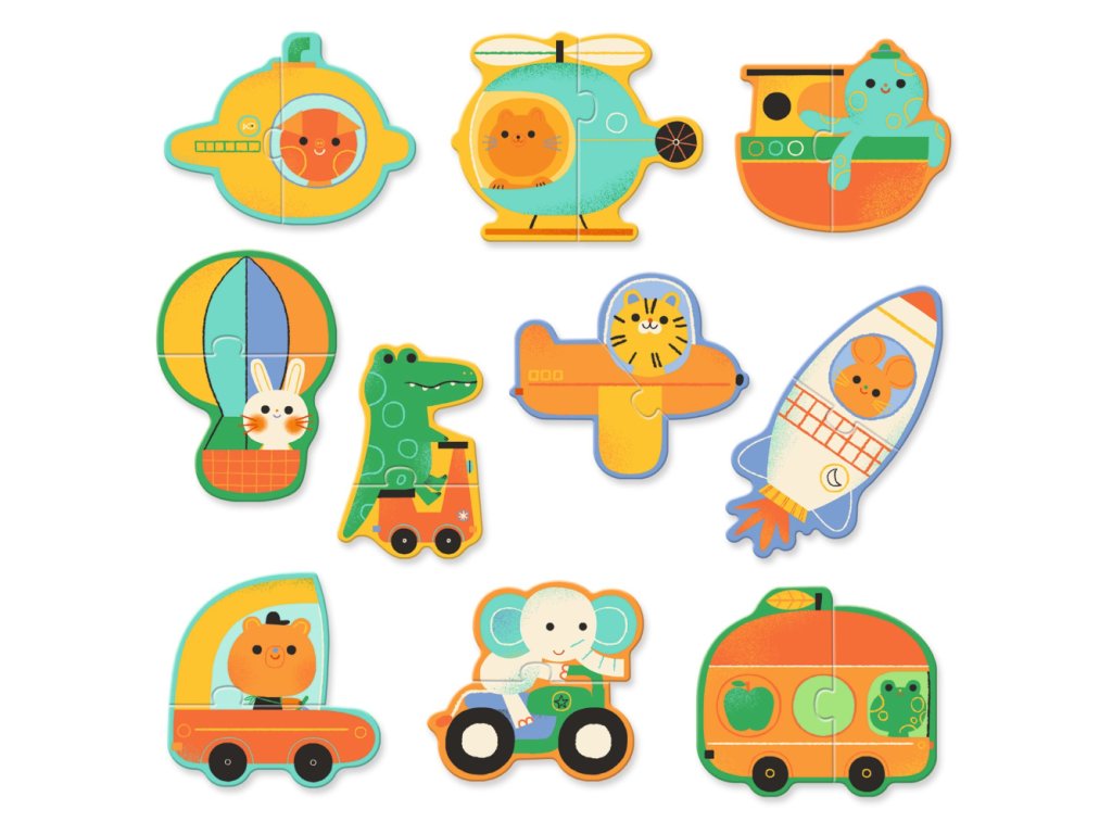 Puzzle Duo Dopravné prostriedky 10 ks Prvé puzzle pre malých fanúšikov áut a strojov Vydaj sa na dobrodružstvo plné áut, lietadiel a ďalších dopravných prostriedkov s edukatívnym puzzle Djeco Duo! Táto sada 10 dvojdielnych skladačiek je navrhnutá špeciálne pre malé detské rúčky od 2 rokov. Každé puzzle pozostáva z dvoch dielikov – deti sa učia priraďovať správne kombinácie, čím si rozvíjajú jemnú motoriku, logické myslenie a vizuálne vnímanie. Vďaka samoopravnému systému puzzle zapadne len tá správna kombinácia. Ideálne na prvé zoznámenie s puzzle svetom!Dodatočné parametre