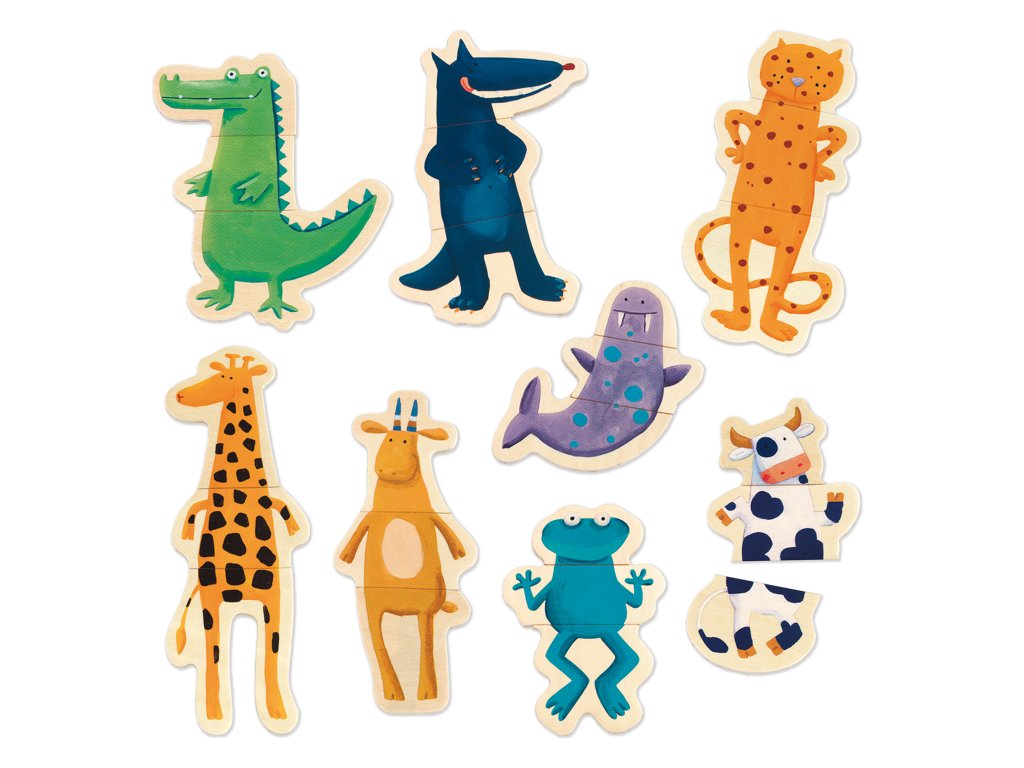 Drevené magnetky Bláznivé zvieratká Poskladaj zvieratká na chladničku – a potom ich poprehadzuj na úplne bláznivé kombinácie Drevené magnetky Bláznivé zvieratká sú hravá magnetická skladačka, v ktorej si deti poskladajú zvieratká z 3 dielikov – hlavy, tela a nôh. Najprv môžu skladať „správne“ zvieratá, no najväčšia zábava začína vtedy, keď dieliky začnú miešať a kombinovať a vytvárať vlastné fantazijné tvory. Magnetky držia na kovových plochách (napríklad na chladničke alebo magnetickej tabuli) a sú príjemné do ruky. Skladanie podporuje jemnú motoriku, pozornosť, logické triedenie a zároveň rozvíja predstavivosť – každé nové zvieratko môže dostať vlastné meno aj príbeh. Pre koho sú vhodné: odporúčaný vek: od 2 rokov Hlavné benefity mix & match princíp – dieliky na seba nadväzujú a dajú sa ľubovoľne kombinovať učí skladať podľa vzoru aj tvoriť vlastné fantazijné zvieratá rozvíja jemnú motoriku a koordináciu ruka–oko podporuje logické myslenie (triedenie dielikov, párovanie častí) skvelé na hranie doma – na chladničku aj magnetickú tabuľu Obsah balenia 24 drevených magnetiek z toho 8 zvieratiek, každé zložené z 3 častí (hlava, telo, nohy)Dodatočné parametre