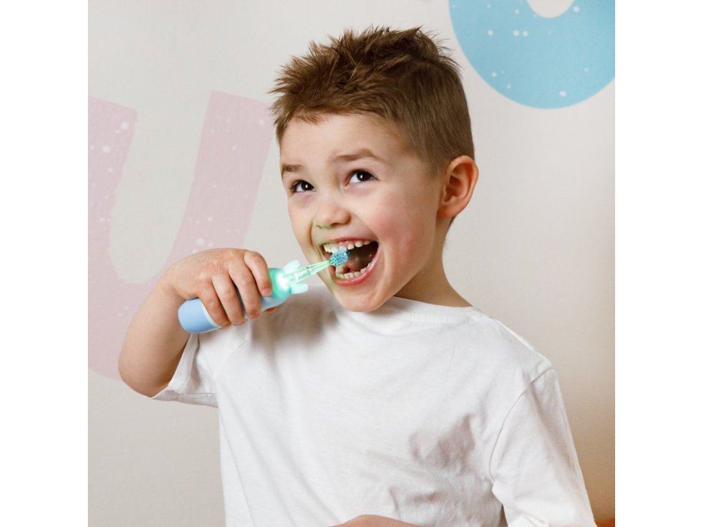 - čistiaca hlava s mäkkými štetinkami je vyrobená z DuPont materiálu, ktorý je pevný a odolný proti opotrebovaniu, má zaoblené konce, chráni ďasná dieťaťa a účinne čistí zuby