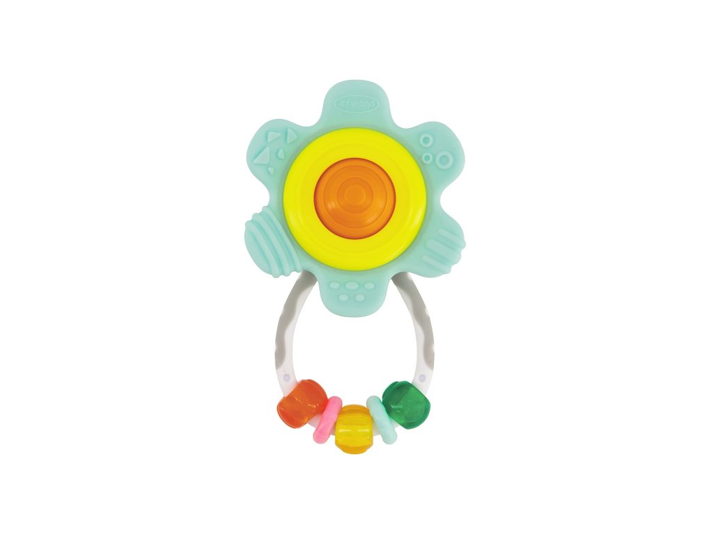 Hrkálka v tvare kvetu má tvar pre ľahké uchopenie. Pozornosť dieťaťa upútajú pohyblivé rôznofarebné krúžky na rukoväti aj hrkajúce korálky v priehľadnej guličke uprostred hračky. Okvetné lístky kvetu slúžia ako hryzátka, ktoré dieťaťu pomôžu pri prerezávaní prvých zúbkov.