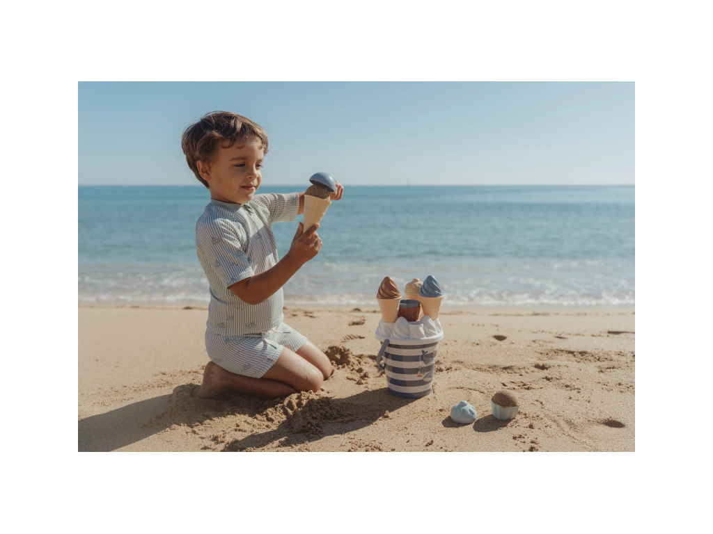 Zmrzlina patrí k letu a s touto rozkošnou sadou s krásnou potlačou motívov zo života pod morskou hladinou si ju vaše deti vyrobia aj z piesku. Sadu tvorí vedierko s rukoväťou, štyri kornúty, naberačka na zmrzlinu, sedem formičiek a sitko.