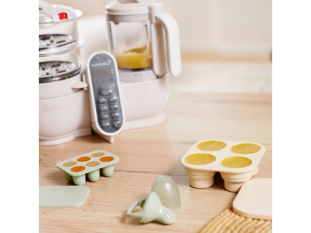 - sada silikónových dávkovačov na skladovanie domácich pokrmov a silikónového cumlíka na kŕmenie