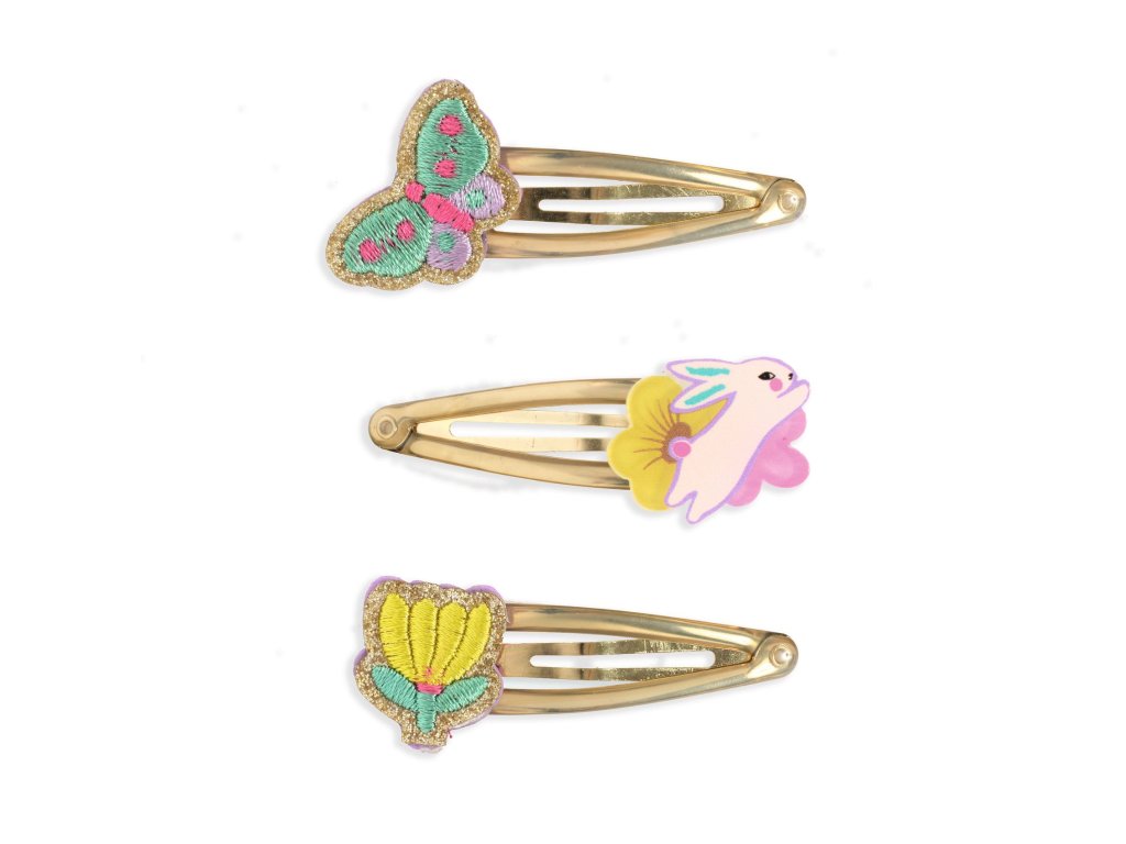 Sada troch sponiek Pensée Tri sponky na rýchly účes: jemné výšivky a pevné držanie bez ťahaniaSada troch sponiek Pensée je krásny vlasový doplnok na každý deň aj na slávnostnejšie príležitosti. Kovové sponky majú odolný epoxidový povrch, vďaka ktorému držia spoľahlivo a zároveň sú šetrné k vlasom. Ozdoby tvoria jemné vyšívané motívy, ktoré účes pekne doladia.Rýchly prehľad odporúčaný vek: od 3 rokov počet kusov: 3 sponky veľkosť: dĺžka sponky cca 5 cmObsah balenia 3× kovová sponka s dekoráciouDodatočné parametre