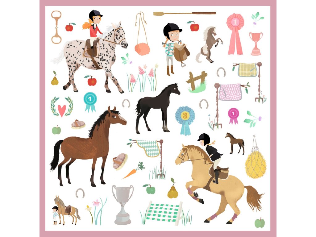 Samolepky Kone 160 ks Pre malých milovníkov koní: 160 samolepiek na tvorenie jazdeckých scén, zdobenie zošitov aj vlastné kolážeSamolepky Kone sú veľká sada 160 papierových samolepiek s motívmi koní a jazdenia.Nájdeš tu kone a poníky, jazdcov, doplnky aj drobné detaily, vďaka ktorým si dieťa ľahko vytvorí vlastné príbehy – v zošite, na výkresoch, pozvánkach či pohľadniciach.Samolepky sú rozdelené na 4 hárky (2 motívy sú v balení dvakrát), takže obľúbené nálepky môže dieťa použiť opakovane.Rýchly prehľad odporúčaný vek: od 4 rokov rozvíja: jemnú motoriku, kreativitu, rozprávanie príbehov, sústredenie v balení: 160 samolepiek na 4 hárkoch (2×2 hárky)Prečo si ich deti zamilujú veľa motívov na tvorbu scén a príbehov duplicitné hárky – obľúbené prvky sa dajú použiť viackrát tvorenie bez neporiadku – stačí papier a samolepky ideálne aj na cesty, do školy či na návštevuObsah balenia 160× papierová samolepka (motívy koní a jazdenia) 4× hárok samolepiek (2 motívy v balení 2×)Technické parametre materiál: papier počet samolepiek: 160 počet hárkov: 4 rozmery balenia: cca 21,5 × 23 cmDodatočné parametre