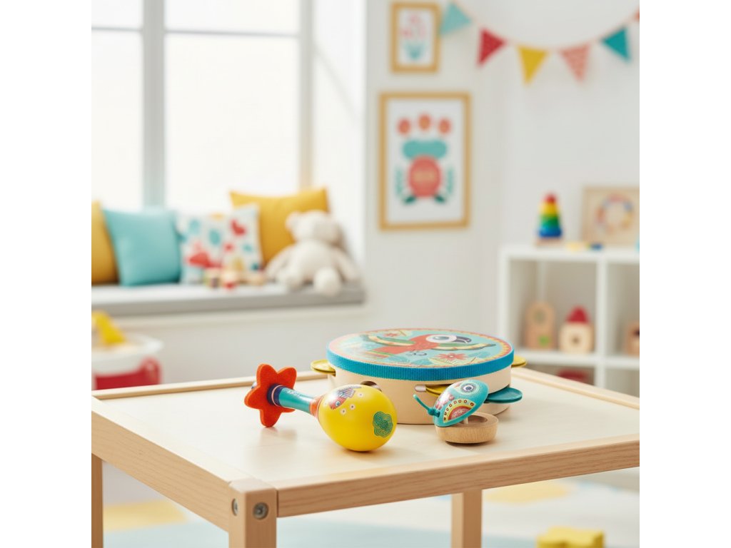 Set hudobných nástrojov Animambo Hudobný set pre deti: 3 nástroje, s ktorými si rytmus zamiluje celá rodinaSet hudobných nástrojov Animambo je krásne ilustrovaný set troch nástrojov, na ktorých si deti vyskúšajú rôzne zvuky a rytmy. Výborný na prvé hudobné aktivity doma aj v škôlke.Nástroje sa dajú používať samostatne aj spolu – dieťa môže vytvárať vlastný sprievod, napodobňovať rytmus alebo hrať „koncert“.Rýchly prehľad odporúčaný vek: od 3 rokov rozvíja: rytmus, koordináciu, sluchové vnímanie, jemnú motoriku v balení: tamburína, maracas, kastanetyPrečo si to deti zamilujú 3 rôzne nástroje = viac možností a viac zábavy učí rozlišovať tiché/hlasné a rýchle/pomalé rytmy skvelé na spoločné hranie – podporuje spoluprácu pevné materiály a krásne ilustrácie AnimamboObsah balenia 1× tamburína 1× maracas 1× kastanety 1× návodTechnické parametre materiál: drevo, kov, plast, gumička rozmery balenia: 32,5 × 18,5 × 6 cmDodatočné parametre
