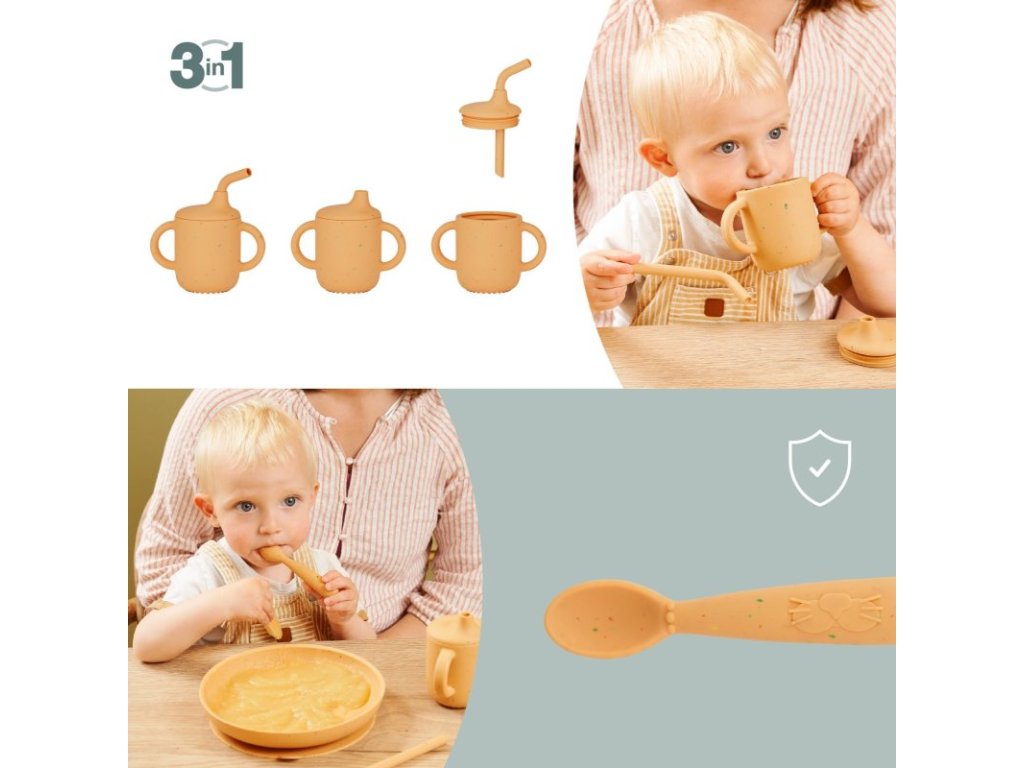 - celosilikónová jedálenská sada pre samostatné jedenie
