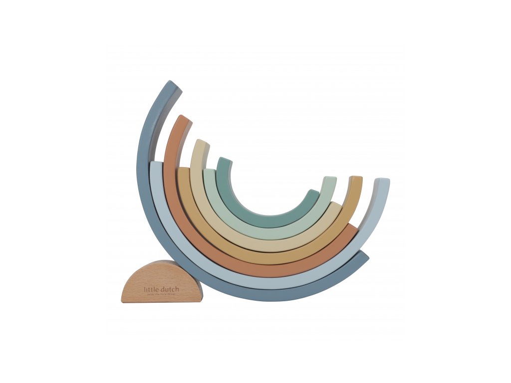 Preneste dúhu z oblohy do detskej izby! Krásna drevená skladačka v tvare dúhy umožní deťom používať svoju predstavivosť na vytváranie rôznych tvarov. Dokáže s jej pomocou postaviť napríklad železničný tunel, domček pre malé bábiky alebo most pre autá. Možností je nekonečne veľa!