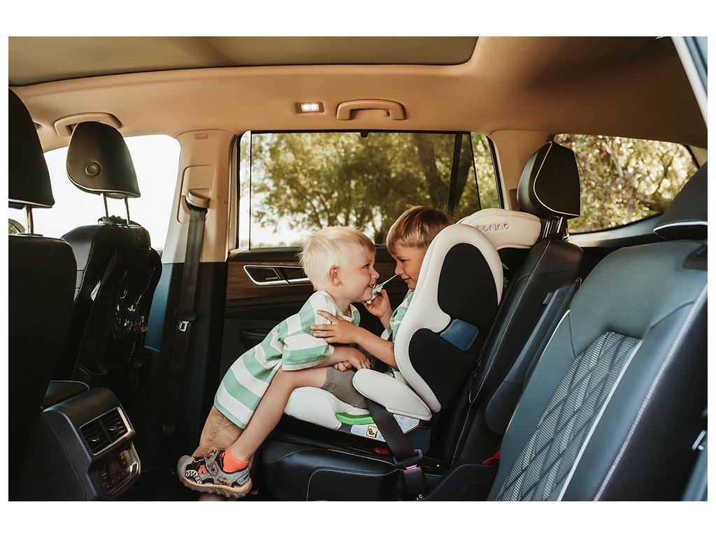 Ergonomický tvar automobilovej peny poskytuje oporu pod kolenami dieťaťa, čo uľahčuje zaujatie pohodlnej polohy. Rovnako ako v autosedačkách, mierna opora stehien zvyšuje pohodlie pri sedení, pomáha udržiavať zdravé, ergonomické držanie tela a znižuje únavu cestujúcich.“