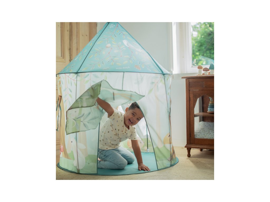 Úžasný stan je skvelým miestom pre všetky deti, ktoré majú rady schovávačky a svoj kútik len pre seba. Stan s krásnou potlačou motívov zo života v lese bude vďačným pomocníkom pri hrách a rozvíjaní fantázie vašich detí. Stan je vybavený dvoma okienkami a vchodovým závesom.