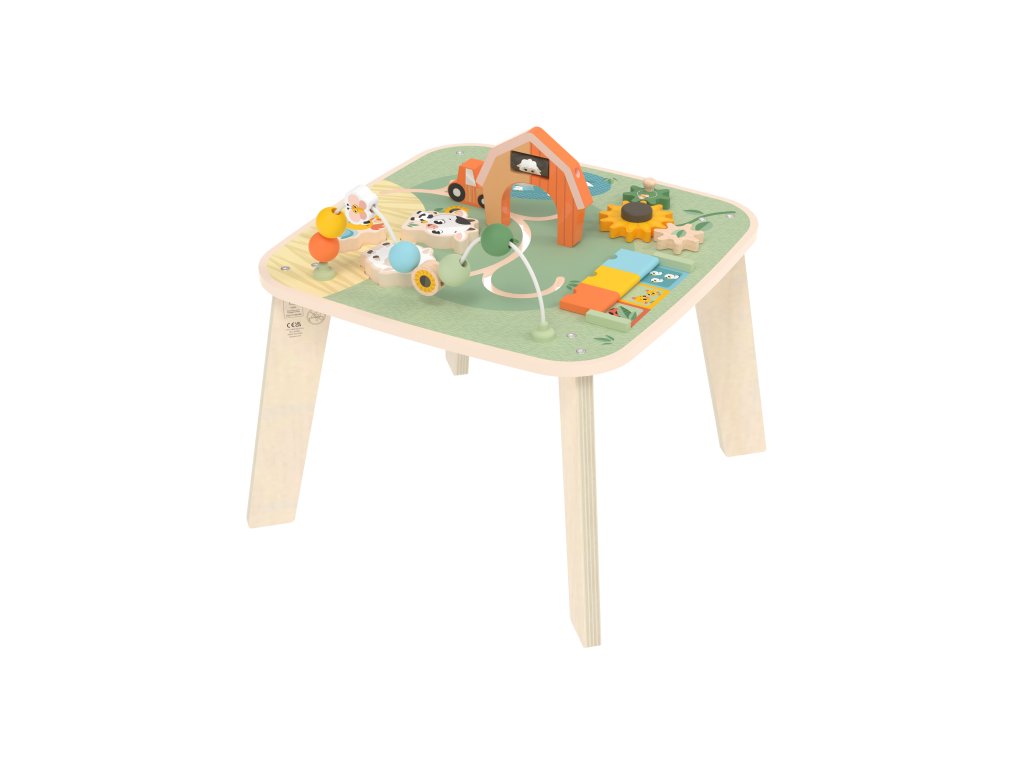 Drevený stolík s aktivitami Tiny Love je skvelá hračka pre malých objaviteľov, ktorá ponúka množstvo možností, ako sa hrať, skúmať a učiť sa. Na jednom mieste kombinuje rôzne pohyblivé prvky, vkladanie a skryté prekvapenia - dieťa si tak prirodzene trénuje jemnú motoriku, koordináciu ruka-oko, sústredenie aj prvé logické uvažovanie. Stolík s krásnymi motívmi zo života na farme podporuje samostatnú hru, ale zároveň je ideálny aj pre spoločné chvíle s rodičmi alebo súrodencami.
