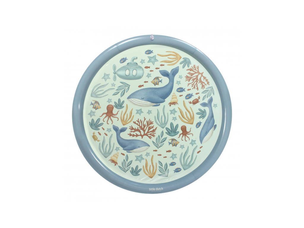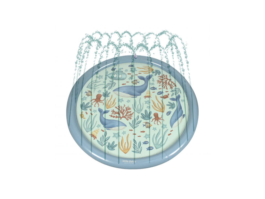 Originálna hracia podložka s vodotryskom, ktorý vytvoríte jednoducho pripojením na záhradnú hadicu s pomocou priloženej spojky. Podložka s krásnou potlačou motívov zo života pod morskou hladinou je ideálny doplnok na záhradu počas horúcich letných dní. Deti si budú užívať behanie cez striekajúci vodotrysk aj hranie sa s vodou na podložke, ktorá funguje ako plytký bazénik.