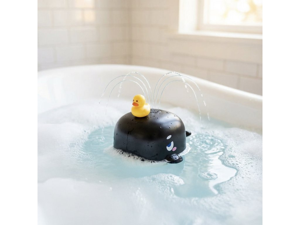 Striekacia hračka do vody Veľryba čiernaKúpanie plné vody a smiechuStriekacia hračka do vody Veľryba čierna premení kúpanie na veselú vodnú šou, pri ktorej deti sledujú, ako veľryba pláva po hladine a z chrbta jej striekajú pramienky vody. Po položení na vodu sa vďaka spodným senzorom alebo spínaču automaticky aktivuje čerpadlo, ktoré vytvára jemnú fontánku, pričom malá žltá kačička na chrbte dotvára hravý vzhľad hračky. Hračka podporuje zmyslové vnímanie a motivuje deti, aby si kúpanie spájali so zábavou, nie povinnosťou. Veľryba je vyrobená z kvalitného plastu s hladkými hranami, batérie sú ukryté v utesnenom priestore prispôsobenom kontaktu s vodou, takže je vhodná na hru vo vani aj v bazéne pre deti od približne 3 rokov. Striekacia hračka do vody Veľryba čierna je skvelým darčekom pre všetky deti, ktoré milujú morské zvieratká, kačičky a vodné hry. Batérie nie sú súčasťou balenia.Nevhodné pre deti do 3 rokov. Používať len pod priamym dohľadom dospelej osoby.Dodatočné parametre