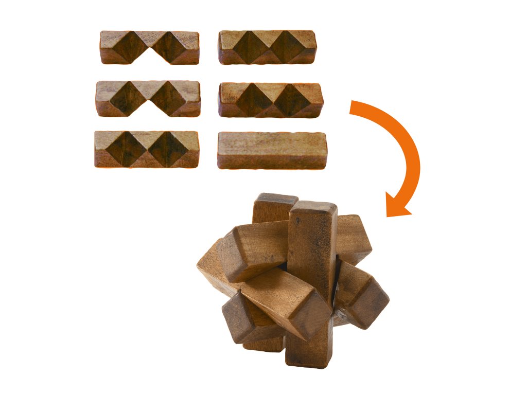 Súprava 6 hlavolamov Woodix Rozoberieš to za chvíľu… ale poskladať naspäť? 6 drevených hlavolamov, ktoré preveria logiku aj trpezlivosťSúprava 6 hlavolamov Woodix je kolekcia drevených „rozober a poskladaj“ hlavolamov s rôznou úrovňou obtiažnosti.Každý hlavolam tvorí niekoľko dielikov, ktoré treba správne kombinovať v priestore, aby vznikol pevný tvar.Skvelé na hranie osamote, ale aj ako výzva pre rodinu – „kto to dá bez nápovedy“.Rýchly prehľad odporúčaný vek: od 7 rokov rozvíja: logické myslenie, priestorovú predstavivosť, trpezlivosť, sústredenie obtiažnosť: viac úrovní v jednom balení v balení: 6 drevených hlavolamov, ilustrovaný návod s riešeniamiPrečo si ich deti aj dospelí zamilujú každý hlavolam je iný – neomrzí to a stále máte novú výzvu trénuje „mozgové svaly“ bez obrazovky – ideálne na tiché sústredenie podporuje vytrvalosť – úspech prichádza po skúšaní a hľadaní riešenia drevo príjemné do ruky a pevné spracovanie – vhodné na opakované skladanie v balení sú riešenia – keď sa zaseknete, pomôže kroková nápovedaAko sa s tým hrá Vyber si jeden z hlavolamov a rozober ho na dieliky. Skús ho poskladať späť – hľadaj, ako dieliky do seba zapadnú v správnom poradí. Keď sa zasekneš, pozri si ilustrované riešenie a pokračuj krok po kroku. Pre zábavu si meraj čas alebo si dajte rodinnú výzvu: kto zvládne viac hlavolamov.Obsah balenia 6× drevený hlavolam (každý z viacerých dielikov) 1× ilustrovaný návod s riešeniamiTechnické parametre materiál: drevo rozmery balenia: približne 21,5 × 21,5 × 5 cm výška jedného hlavolamu: približne 5 cm (líši sa podľa typu) Tu nájdete návodDodatočné parametre