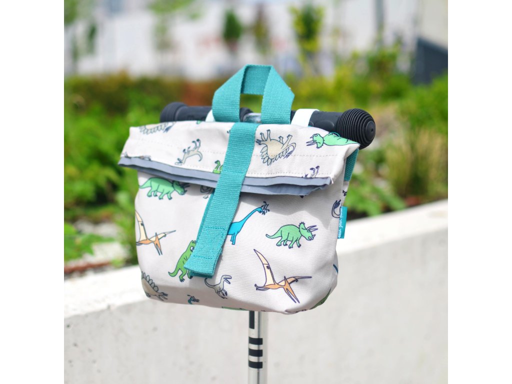 Taška na bicykel a odrážadlo Dinosaury Praktická taška na bicykel! Taška na bicykel s dizajnovým motívom dinosaurov od francúzskej značky Petit Jour s rozmermi 28 x 19 x 10 cm a objemom 5,5 l sa skvele hodí na odrážadlo, bicykel aj kolobežku. Má jedno veľké vrecko so zapínaním na suchý zips. Vďaka tomu do nej deťom dobre ukladajú veci ako občerstvenie, voda, peňaženka, hračky, mobil a iné. Dá sa namontovať na akýkoľvek kov. Dôležitý je aj výrazný reflexný pásik na prednej strane tašky.Vyrobené z recyklovaného materiálu Taška na bicykel Dinosaury je vyrobená z materiálu RPET, špeciálneho netkaného vlákna vyrobeného priamo z recyklovaných PET fliaš. Je pevný, vysoko odolný a ľahko sa umýva vlhkou handričkou. V prípade potreby môžete stôl prať v práčke na 30 °C. Značka Petit Jour kladie veľký dôraz nielen na estetiku a funkčnosť, ale aj na kvalitu a bezpečnosť svojich produktov. Od 80. rokov 20. storočia vyrába hračky, doplnky a riad pre deti. Produkt nedávajte do sušičky a nežehlite ho.Dodatočné parametre
